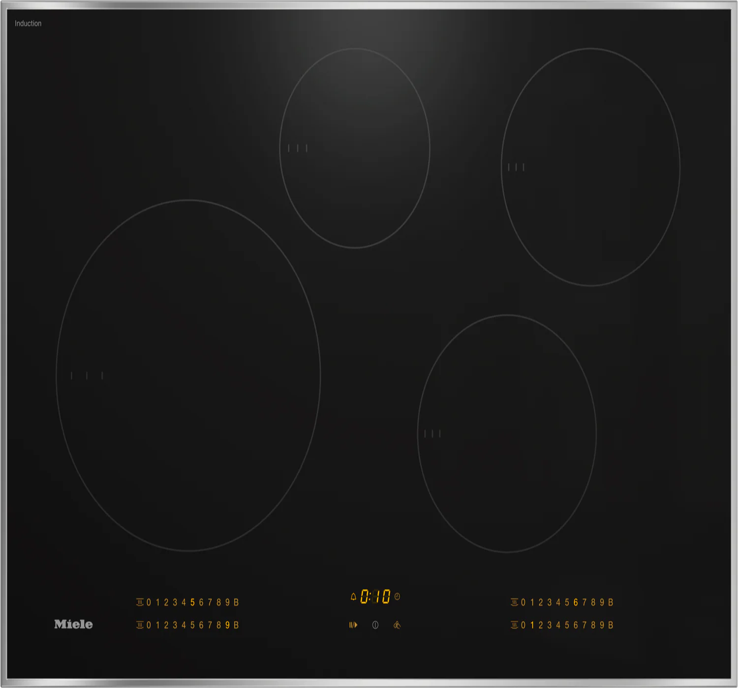 The brand Miele KM7730FR delivers advanced functionality and elegant aesthetics with this 30-inch frameless electric cooktop. Designed with a modern ceramic glass surface, it features 5 HiLight radiant cooking zones, including a PowerFlex zone that accommodates larger cookware and allows flexible use. The intuitive DirectSelect Plus touch controls provide precise, direct access to power levels and settings for each zone. Residual heat indicators enhance safety, while Stop & Go functionality allows temporary pausing of cooking zones. Additional features include a Timer with auto shut-off, pan size recognition, and EasyClean ceramic glass for quick cleanup. The KM7730FR offers a stylish, flush design ideal for contemporary kitchens prioritizing precision and minimalist design.