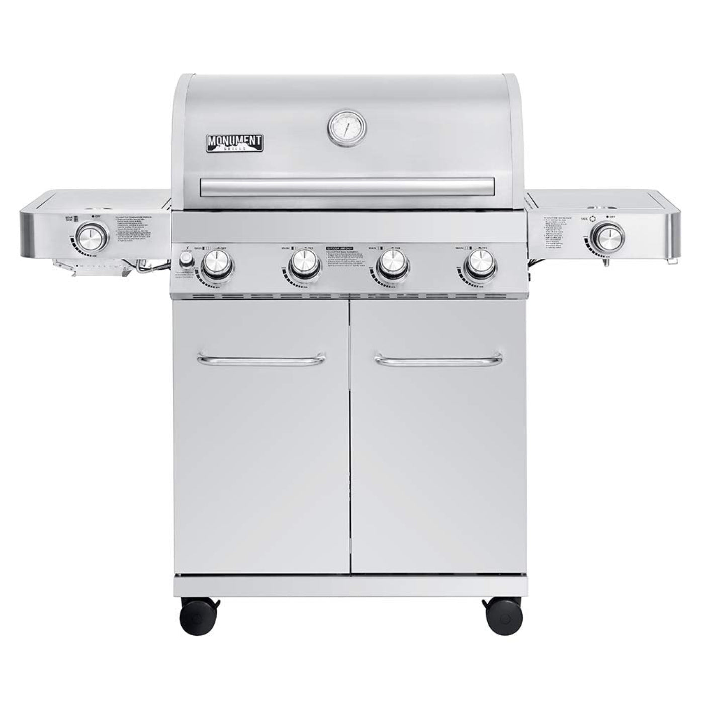 Q: What is the cooking power of this Monument 4-Burner Gas Grill?