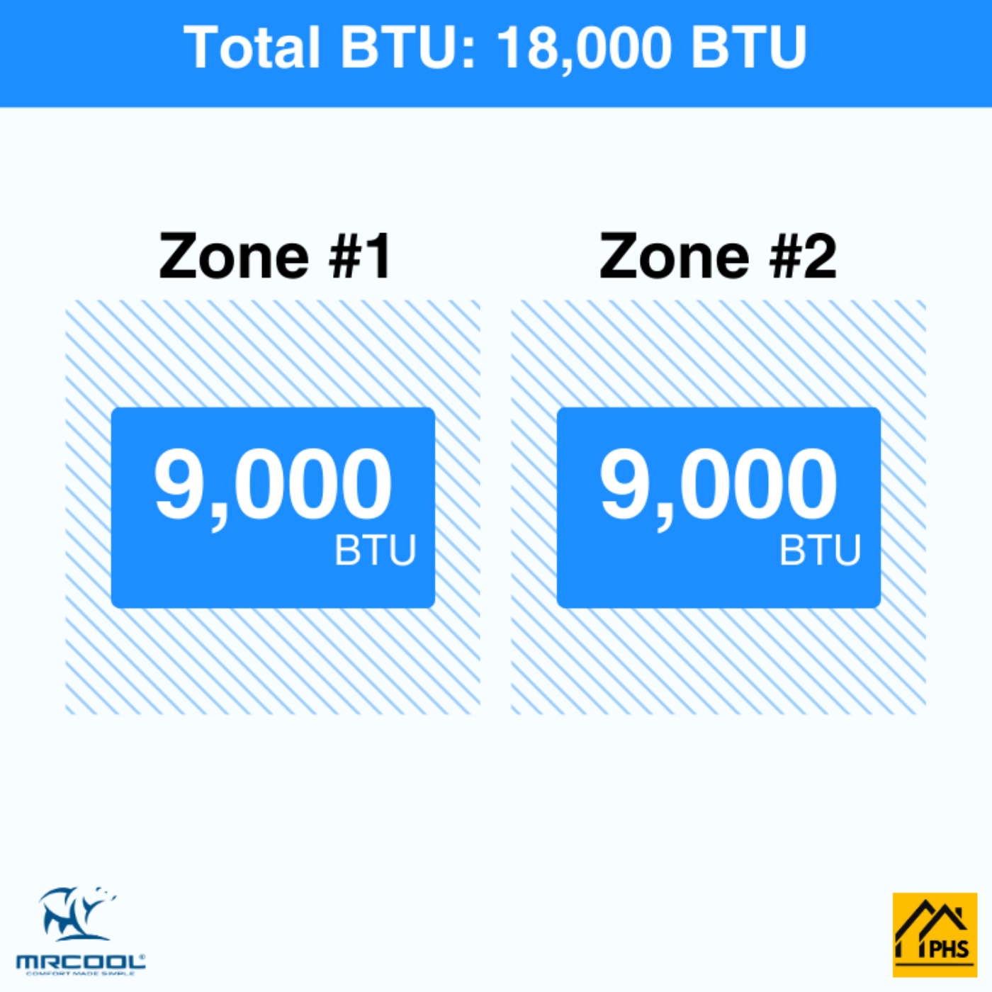 A: 36,000 BTU — ideal for medium to large homes or multiple connected spaces needing zoned climate control.