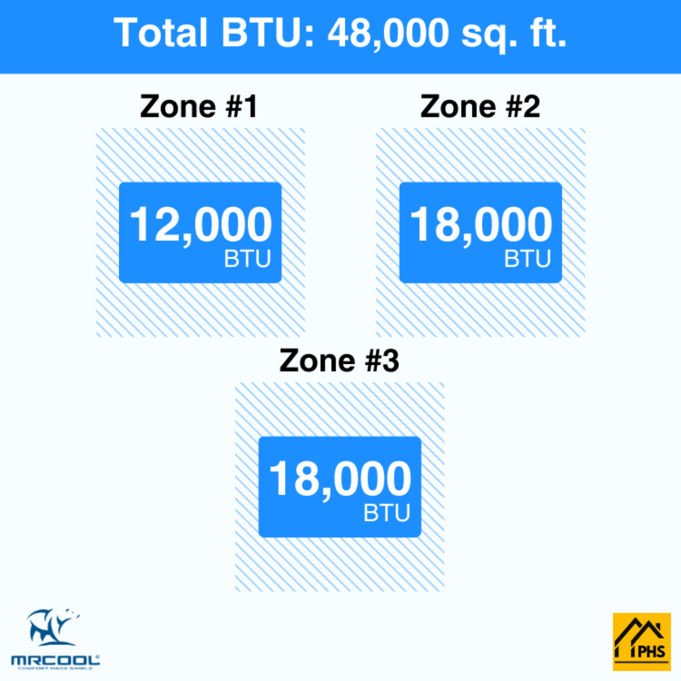 High‑Capacity Multi‑Zone Comfort – 48,000 BTU system supports three zones (12K + 18K + 18K) for personalized cooling and heating across multiple rooms.
