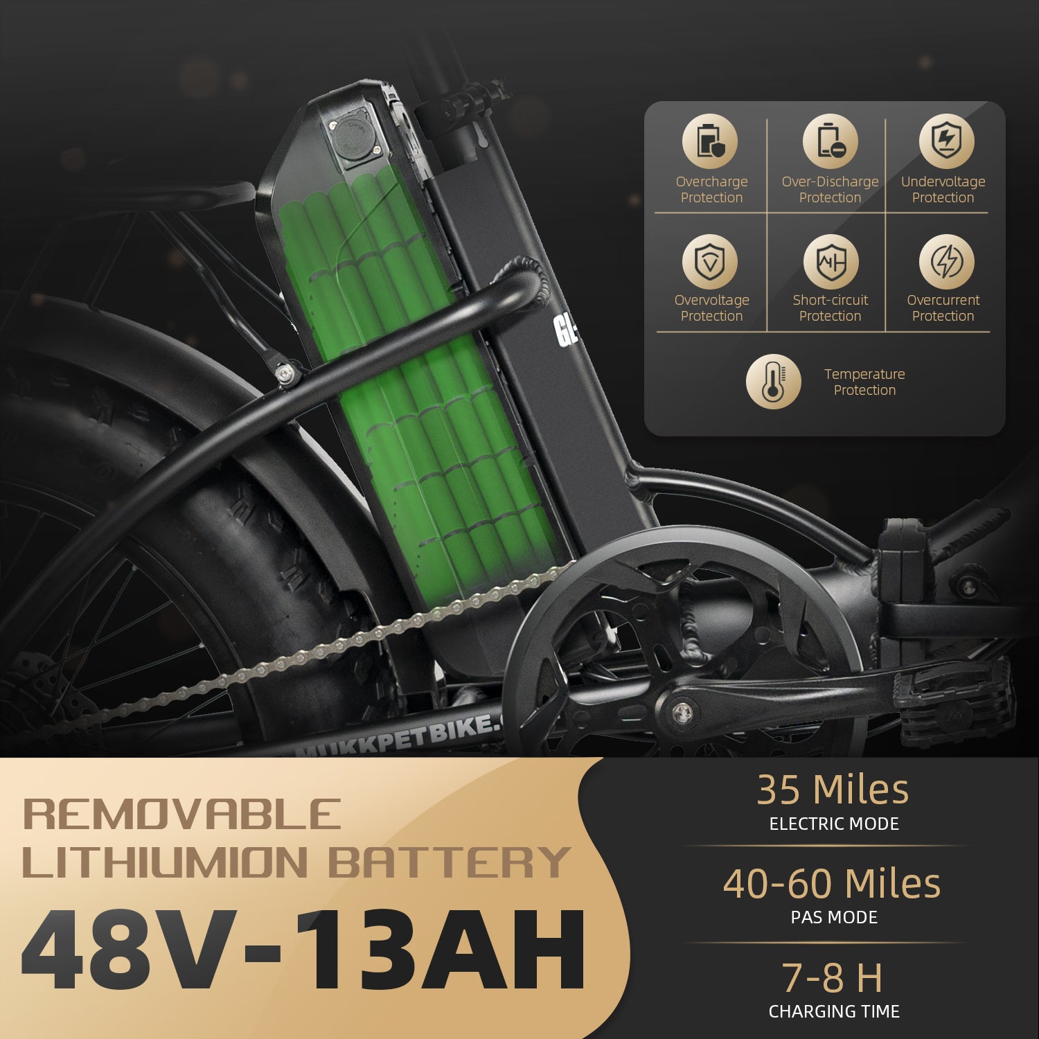 Q: What is the Mukkpet GM 48V/13Ah 500W All Terrain Folding Fat Tire Electric Bike?