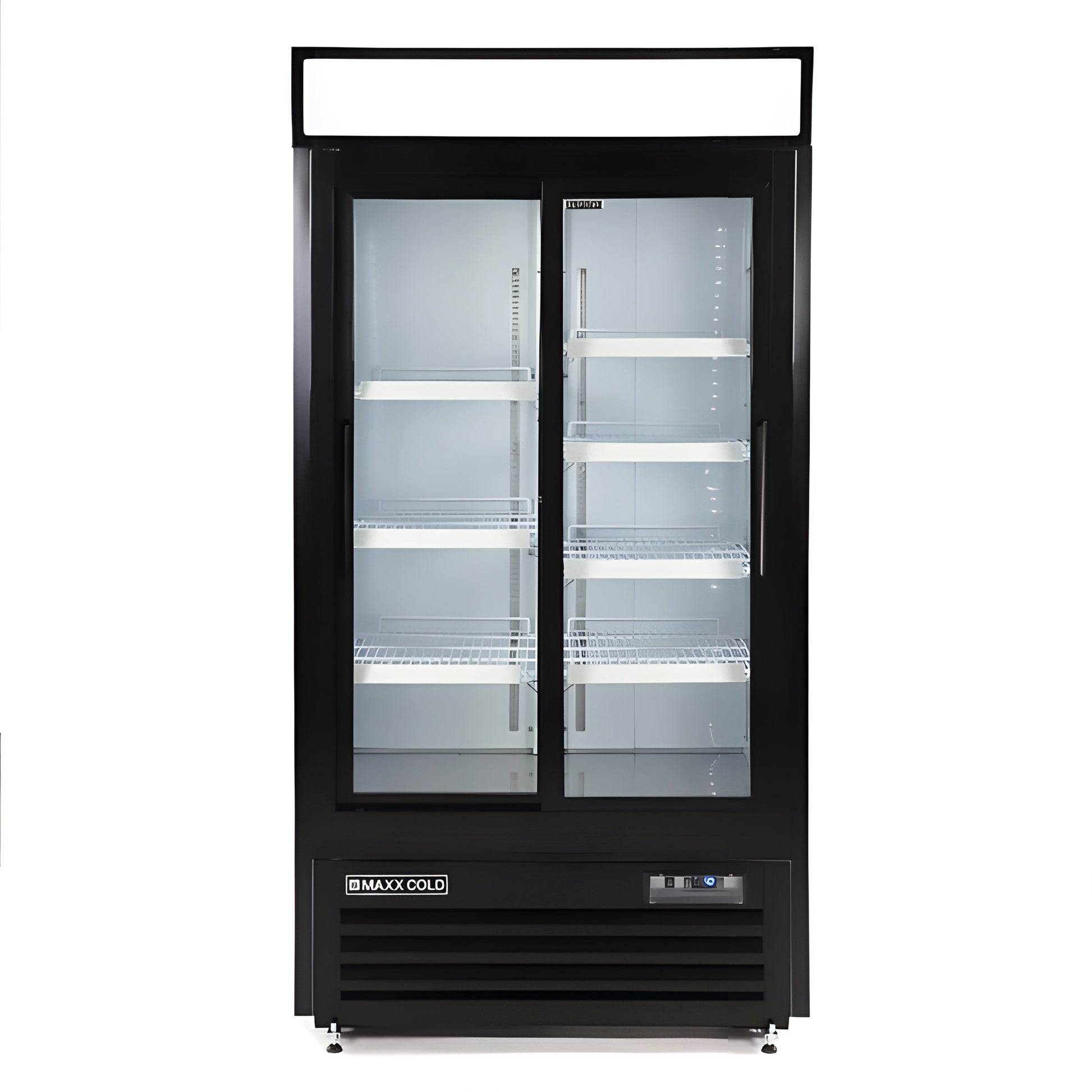 Maxx Cold Double Glass Door Narrow Width Merchandiser Refrigerator, Sliding Door, 36 cu. ft., Black - MXM2-36RSBHC