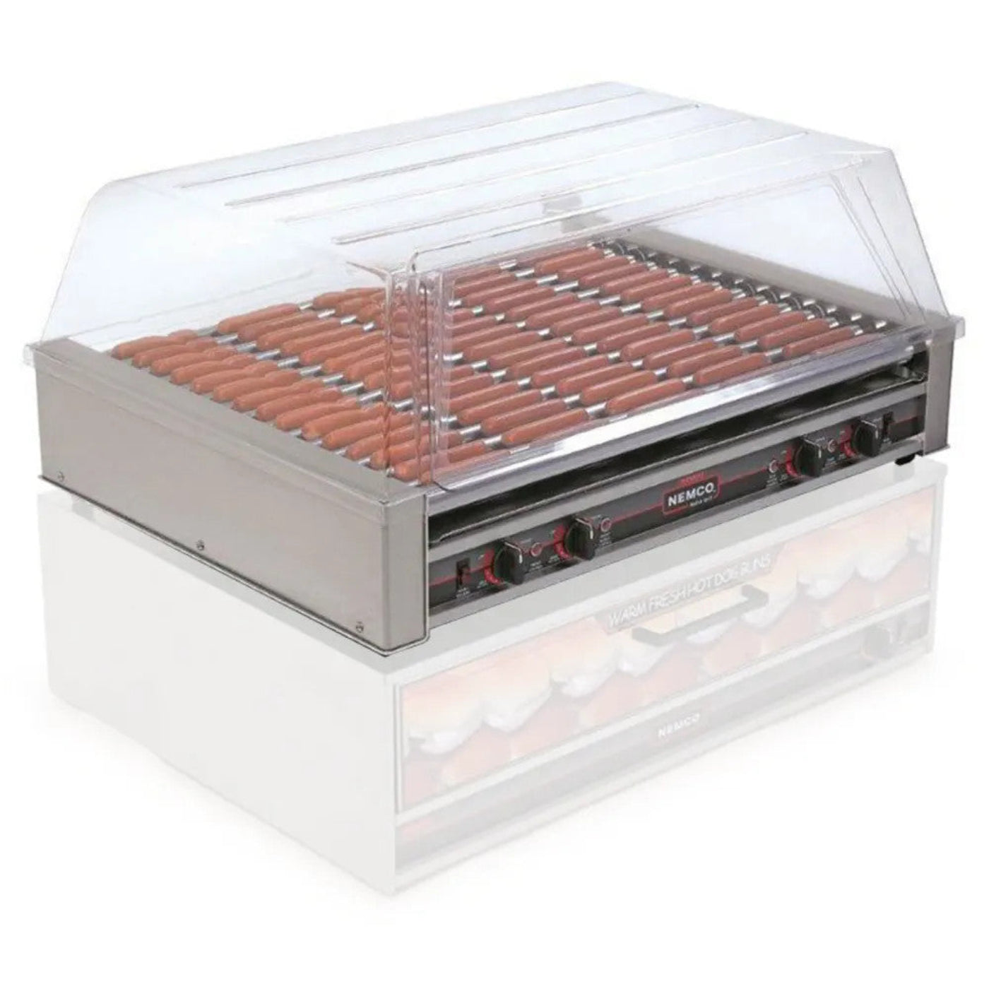 A commercial hot dog roller grill designed for consistent cooking and easy serving in restaurants, concession stands, and catering setups.