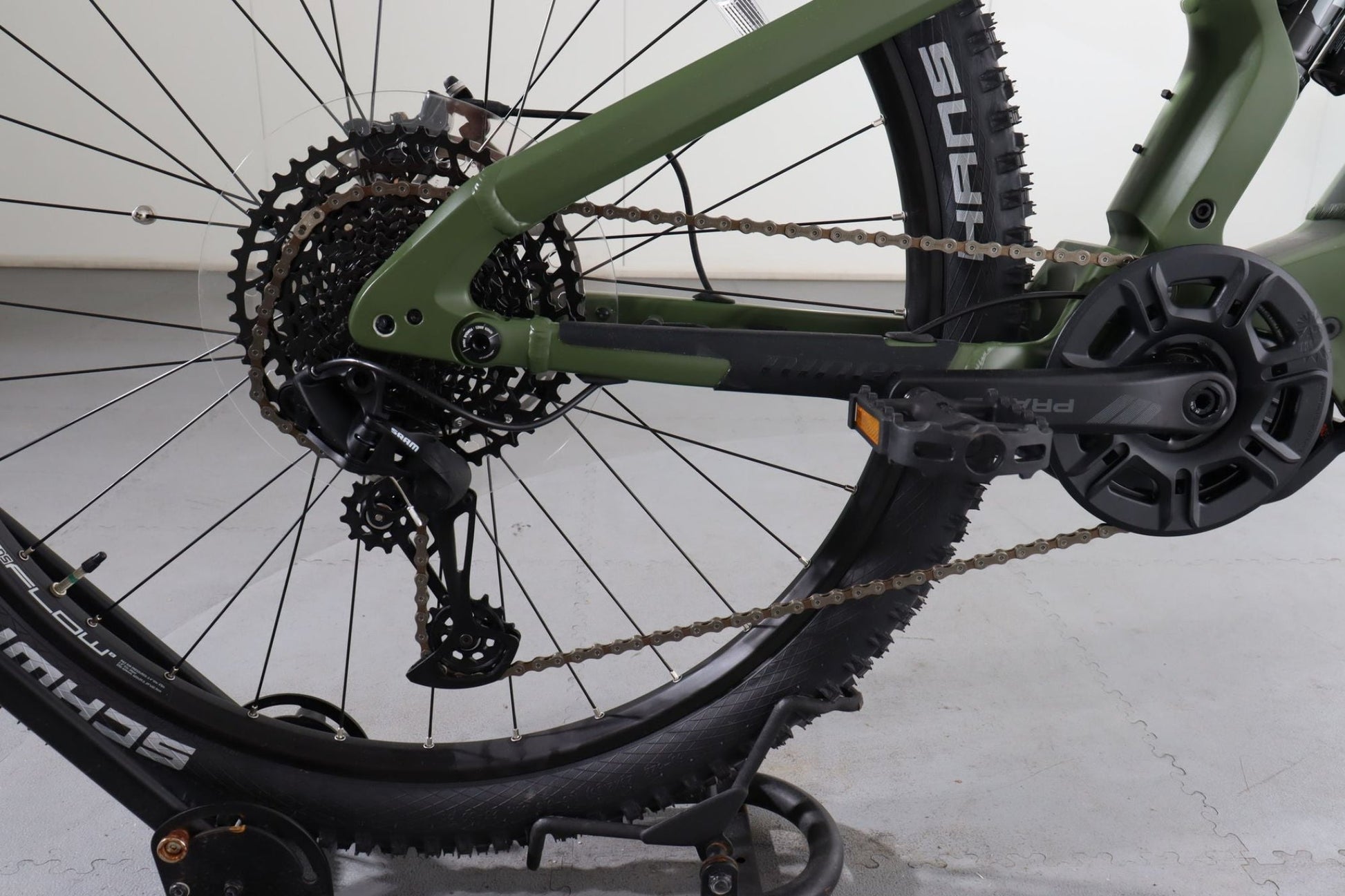 Wheels & Tires: Equipped with Stans NoTubes Flow D 29er wheels and Schwalbe Eddy Current tires, providing stability and traction on technical trails.