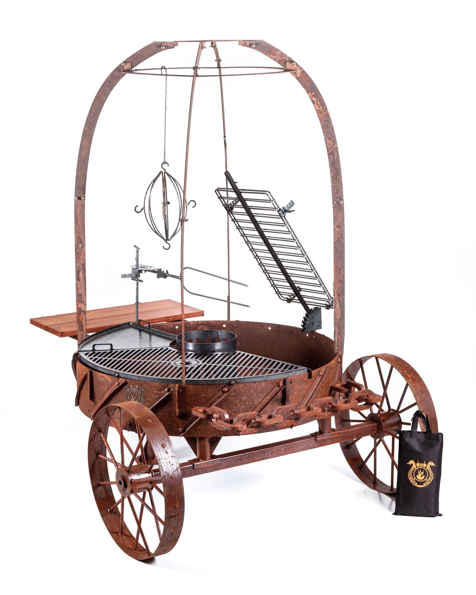 Our largest grill ODIN PRO arrives!! With a diameter of 51.1 inches and a height of 30.7 inches, weighs 473 lbs. Includes table and wheels that helps if you want to move it. Made in noble materials: Iron and Wood. Made in Argentina.