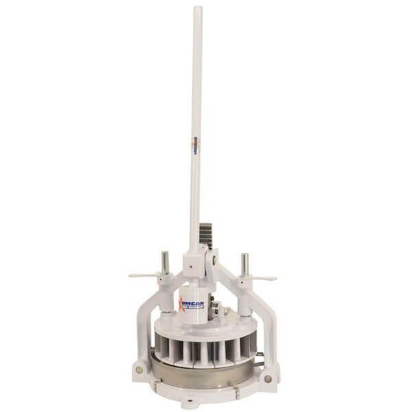 The Omcan 10839 Manual Dough Divider streamlines kitchen operations. It can efficiently divide up to 6.6 lb. of dough into 30 equal portions, ranging from 2.2 lb. to 6.6 lb., ensuring precise portion sizes from 1.1 ounces to 3.5 ounces.
