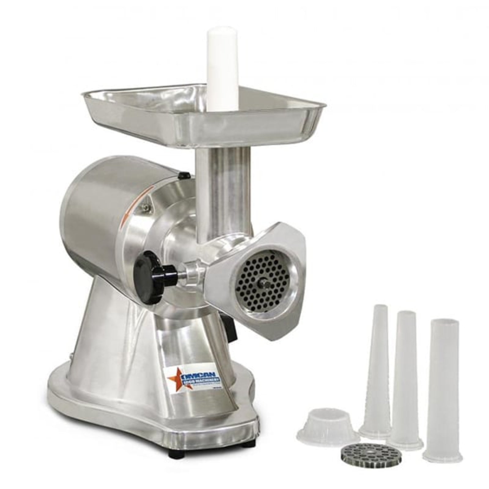 Equipped with (3) additional spouts, an extra #12 machine plate, and a handy stomper, this grinder provides exceptional value and versatility. With 110v/60/1-ph compatibility and consuming only 8.0 amps, this grinder offers both power and energy efficiency, making your meat processing tasks a breeze.