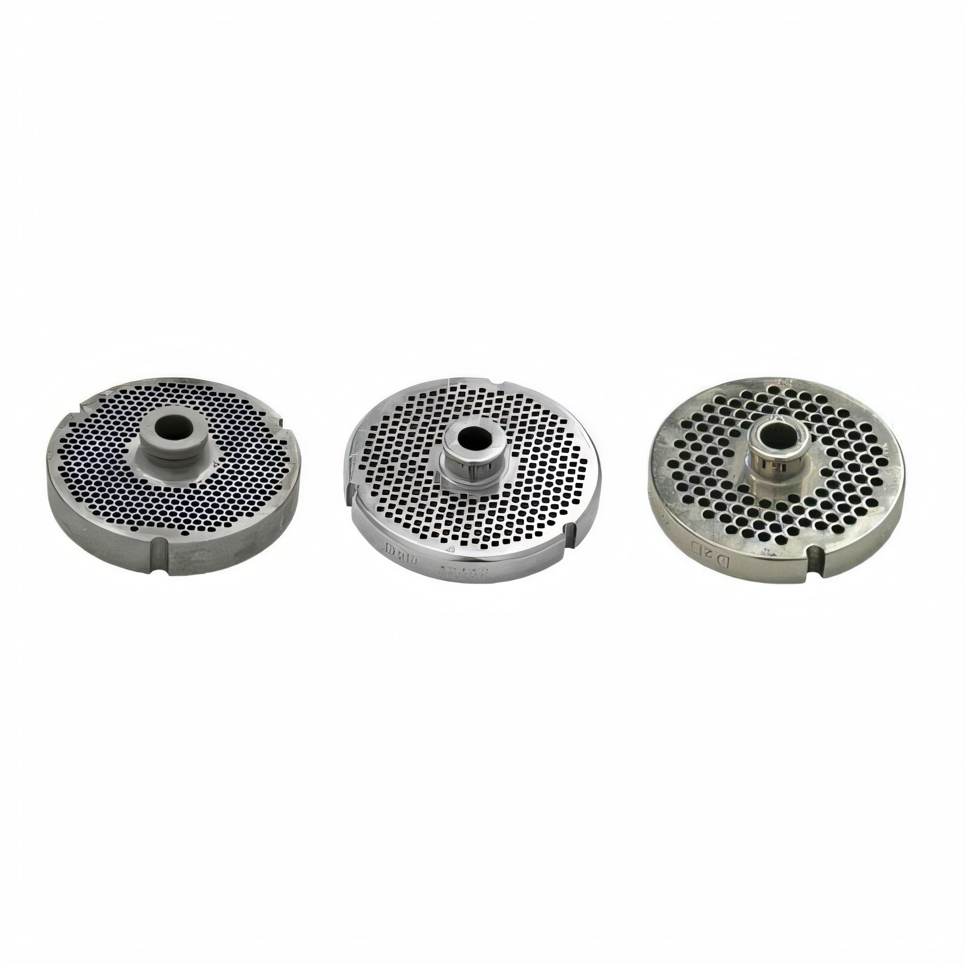 Omcan USA 11177 D2 Meat Grinder Plate — heavy-duty #52, 1/2" (12.8mm) hard steel plate with hub, designed for durability and precise grinding. Direct replacement part for Omcan D2 machines, engineered to maintain consistent texture and performance in commercial kitchens. Ideal for restaurants, butcher shops, and high-volume foodservice operations.