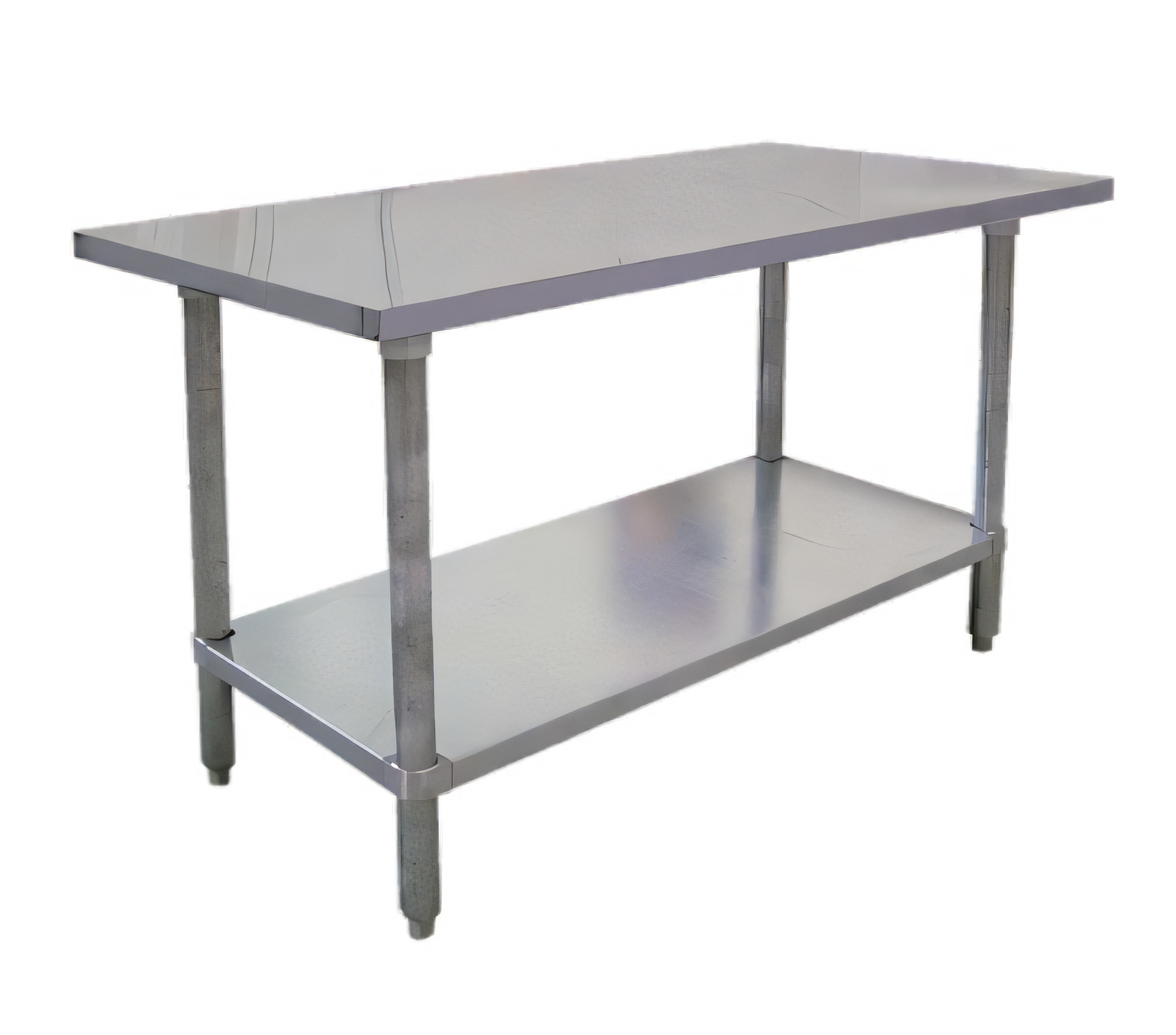 Omcan USA 26045 Stainless Steel Prep Table β Heavy-duty 84" x 30" work table built for commercial kitchens. Constructed of durable 20/430 stainless steel with a 1500 lb load capacity, undershelf, six legs with socket & bullet feet, and NSF certification. Ideal for food prep, catering, and restaurant use; ships on pallet for safe delivery.