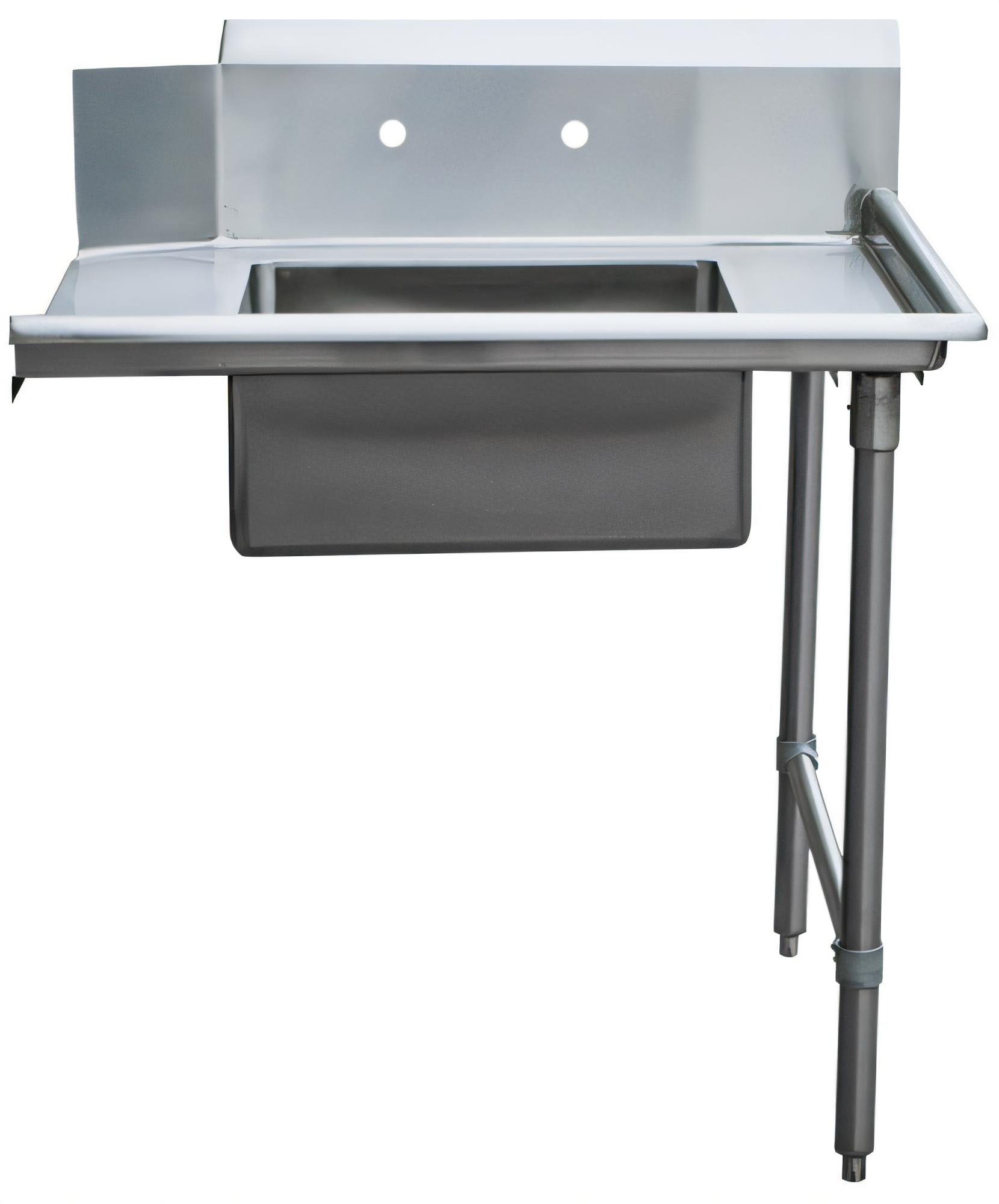 Omcan USA 28483 36" stainless steel soiled dishtable with right-side sink—NSF certified commercial-grade unit ideal for busy kitchens and foodservice operations. Durable, easy-to-clean construction and pallet-shipped for secure delivery. Perfect for sanitizing and organizing dishwashing stations in restaurants, cafeterias, and catering facilities.