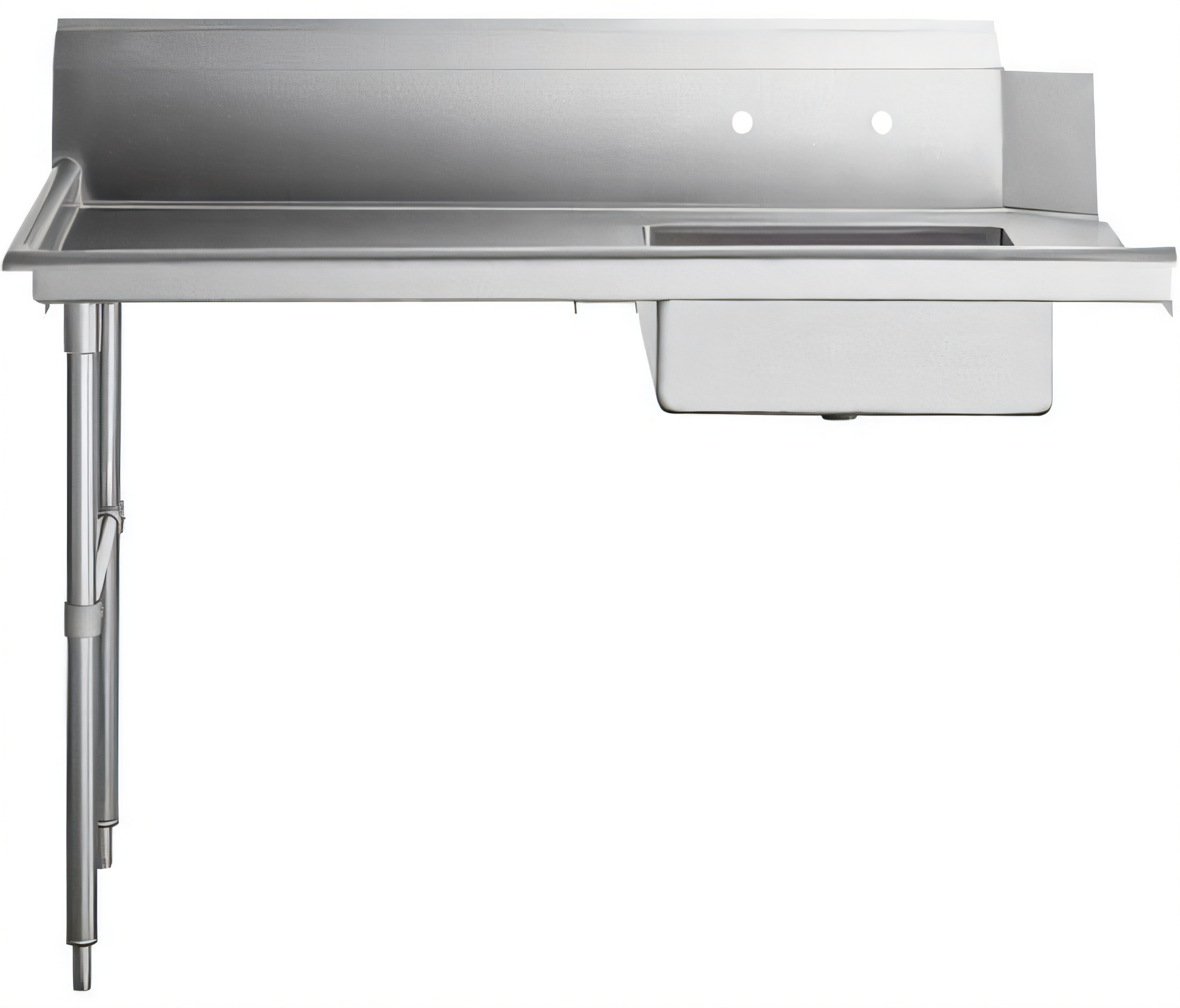 Omcan USA 28485 48" stainless steel soiled dishtable with right-side sink β NSF-certified and built for heavy-duty commercial kitchens. Durable, easy-to-clean construction provides efficient dishwashing workflow and long-lasting corrosion resistance. Ships on a pallet for safe delivery; ideal for restaurants, cafeterias, and foodservice operations.