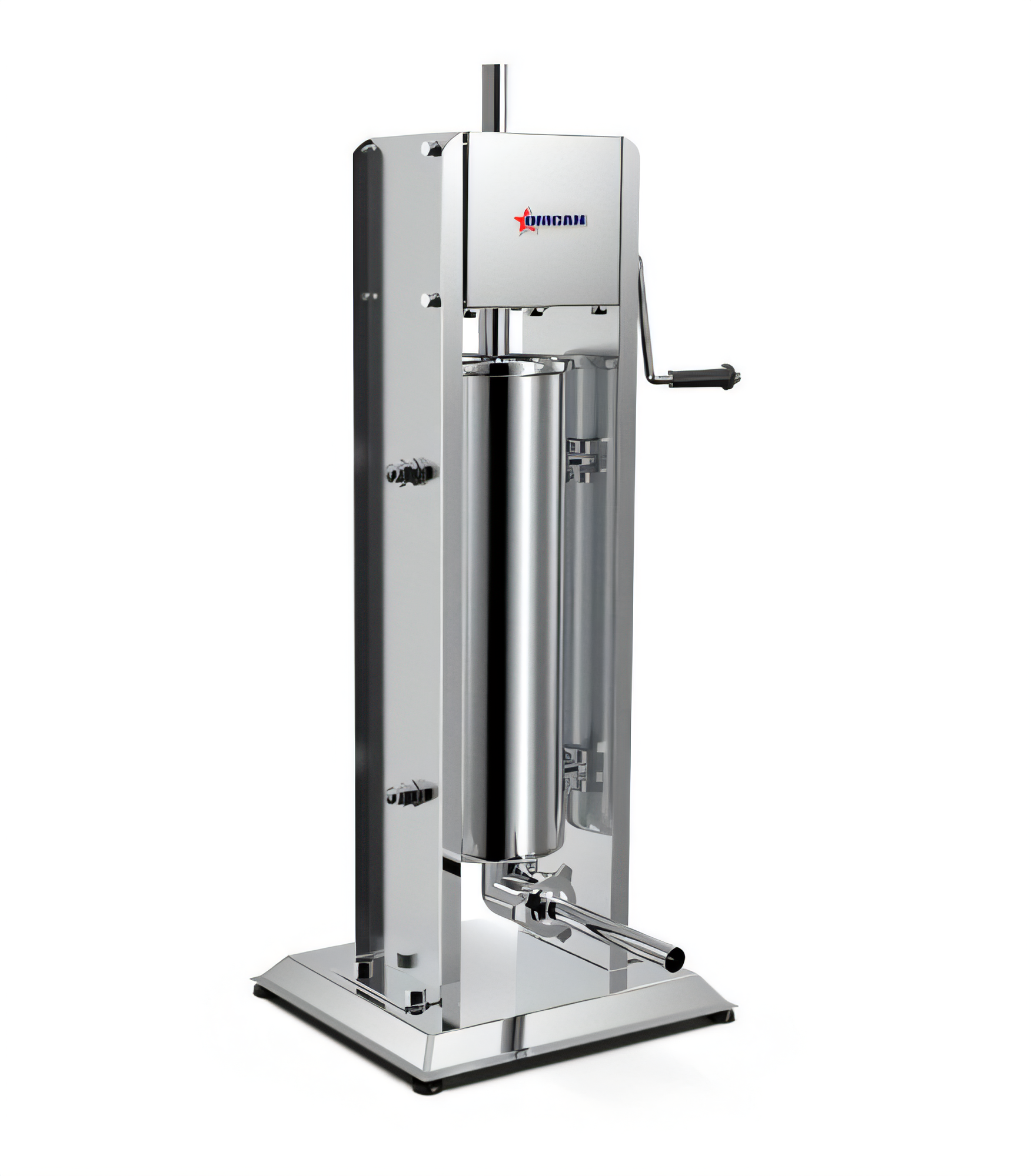 Heavy-duty manual vertical sausage stuffer ideal for home chefs and small-scale producers.