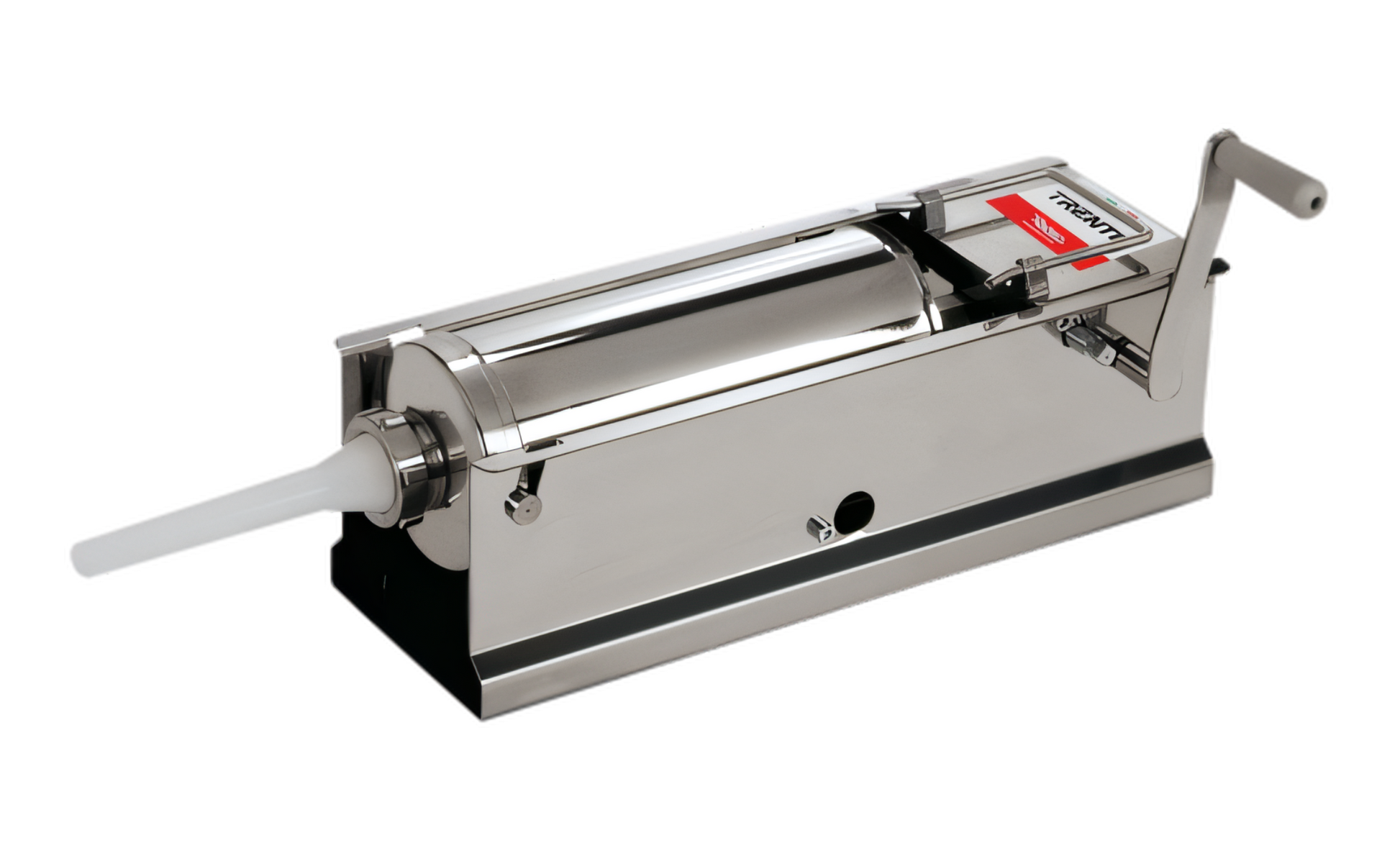 Heavy-duty manual sausage stuffer ideal for butcher shops, restaurants, and home charcuterie enthusiasts.
