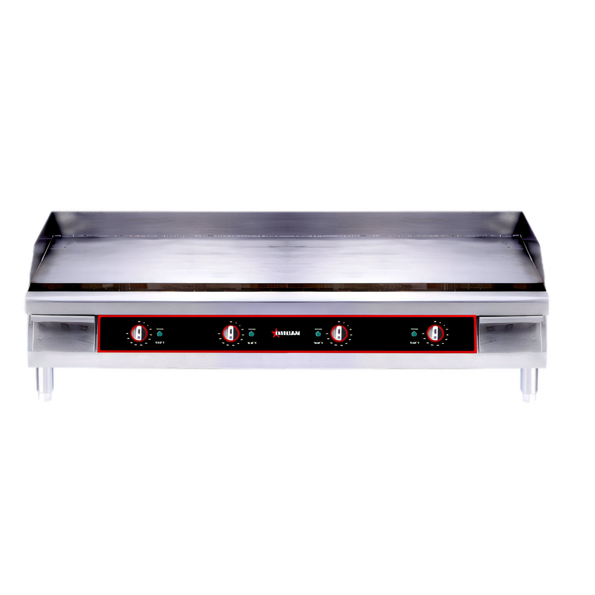 A: A 48″ heavy‑duty commercial electric countertop griddle with a large cooking surface and precision thermostatic controls — designed for professional kitchens.