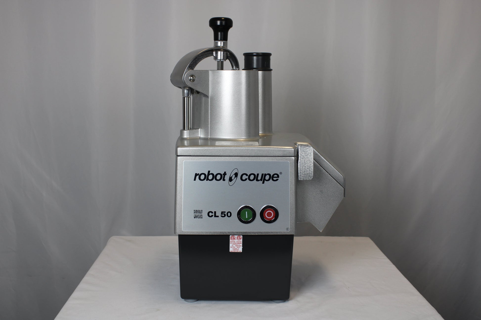 The Robot Coupe CL50E is a Vegetable Prep Food Processor. Prepare 1200 servings in 3 hours or less! Robot Coupe is the Inventor and World Leader in Food Processors! The vegetable prep attachment is designed for quality continuous feed for slicing, dicing, shredding, grating, french fry, and julienne. The unit accommodates 36 different processing discs and potato ricing attachment - Sold Separately. The standard model includes motor base unit with continuous food attachment, one 1/8" slicing disc, and one 1/8" medium grating disc. The new lid designed to ease the cleaning process. The larger hopper opening accommodates more product. Attachments are easily removed for maximum cleaning ability.