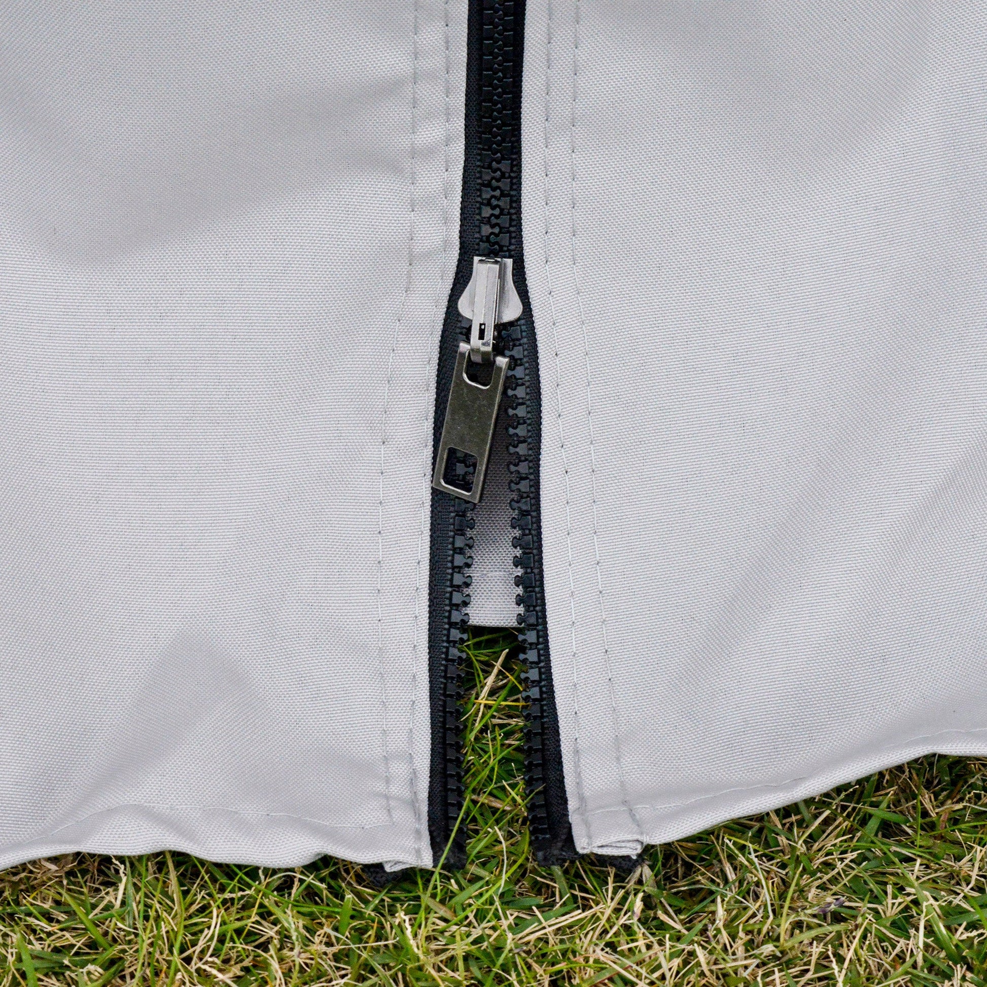Double-Tier Roof Design: The two-tier canopy improves airflow, reduces heat buildup, and minimizes wind stress while the grommets drain rainwater, protecting the frame.