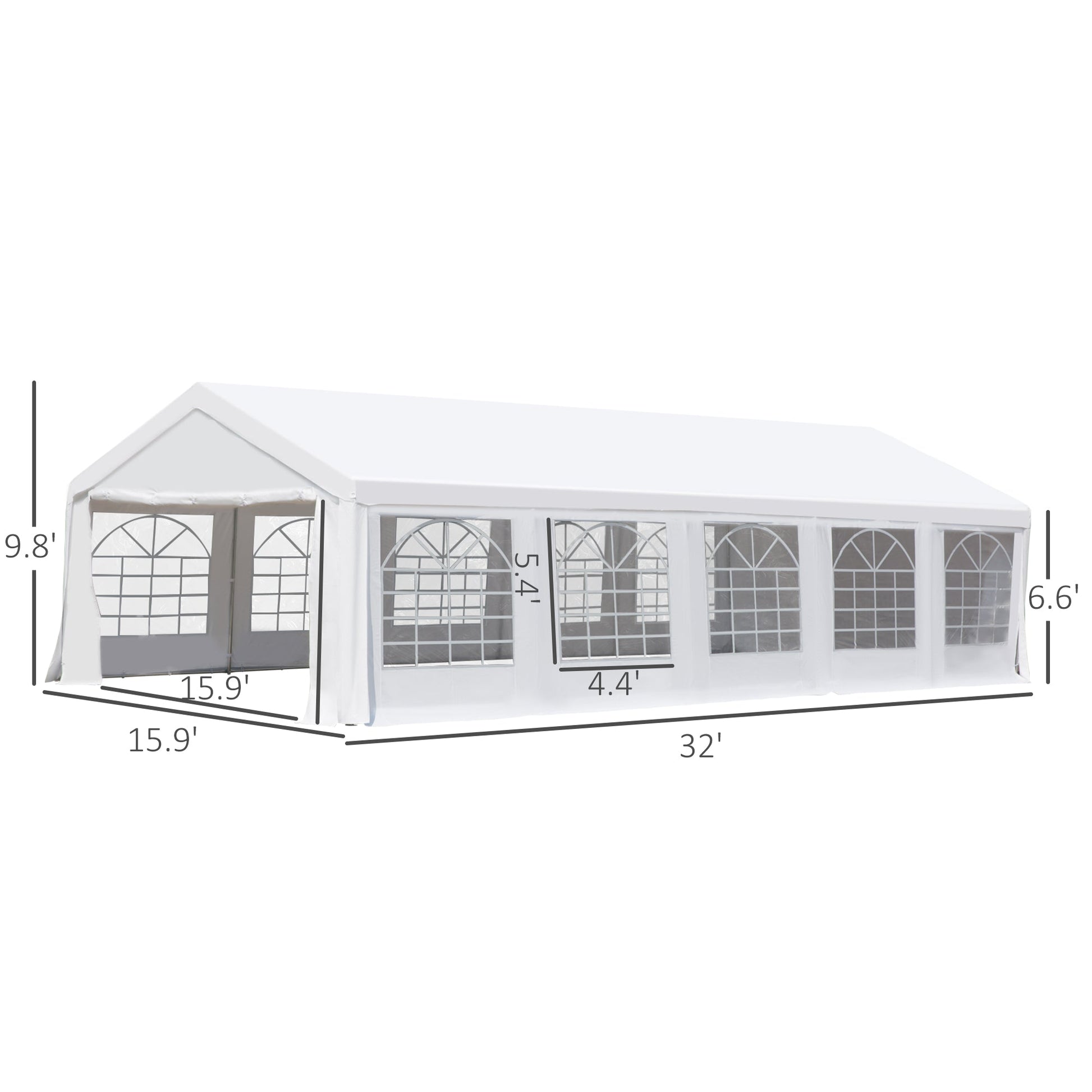 Spacious Multi-Use Shelter: The Outsunny 32' x 16' Party Tent provides generous space for weddings, receptions, parties, or as a temporary carport.