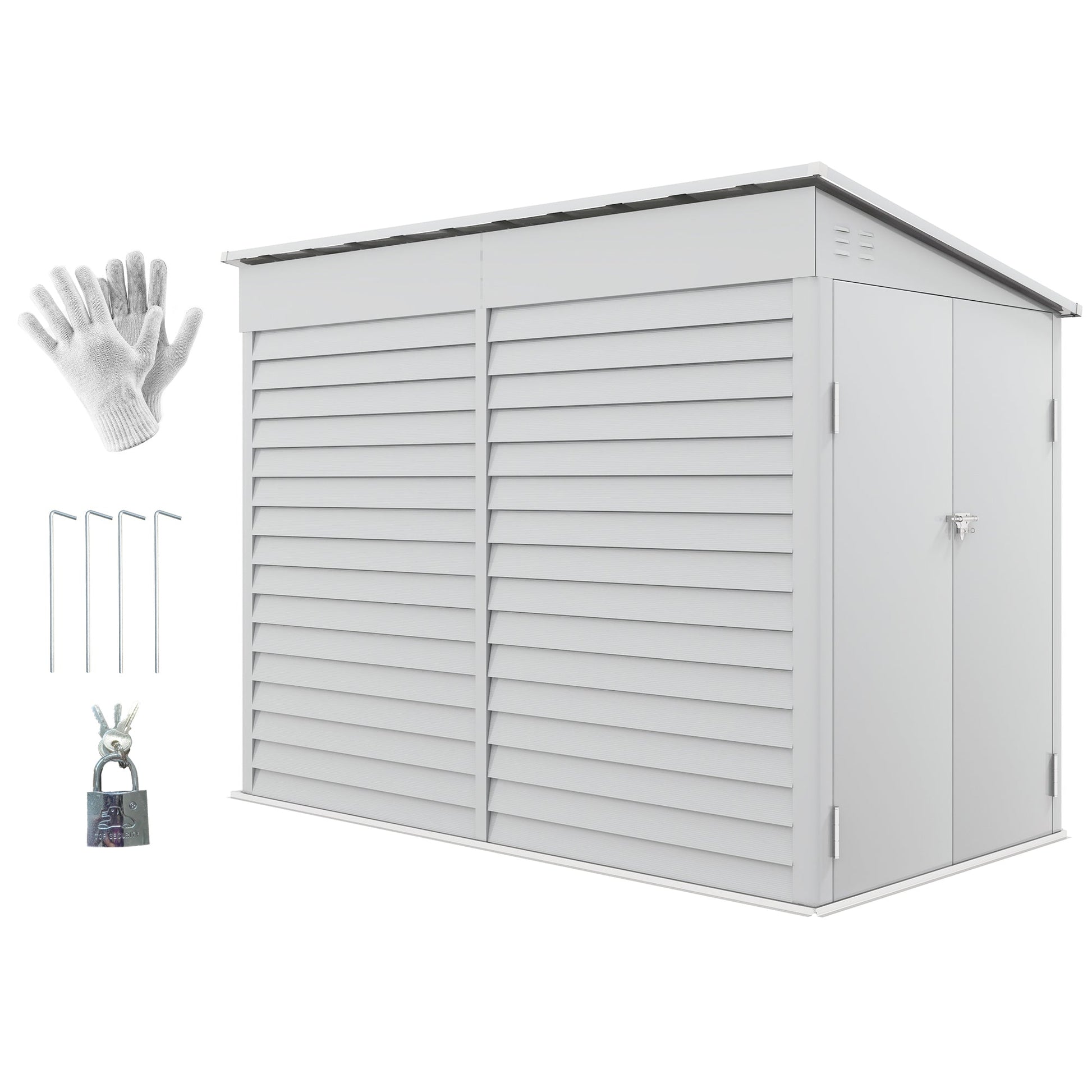 - Outdoor Storage Space: This metal shed brings much storage to your backyard. Store garden tools, put away pool supplies, and lay lawn care equipment
