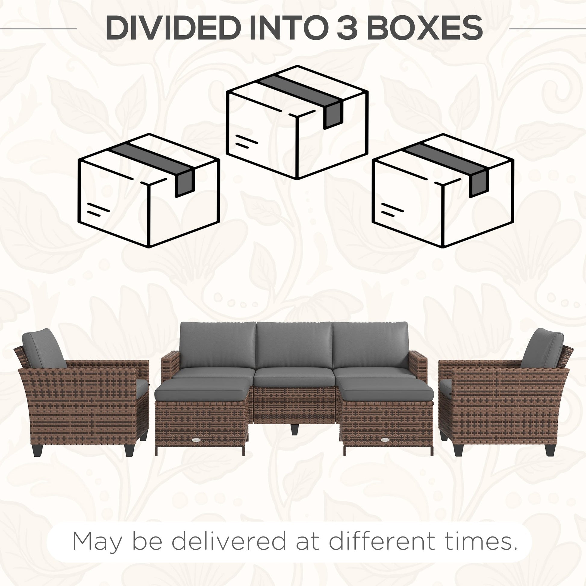 Complete Outdoor Lounge Set: The Outsunny 5-Piece PE Rattan Patio Set includes a 3-seater sofa, two armchairs, and two ottomans, comfortably seating up to seven guests β perfect for family gatherings or entertaining outdoors.