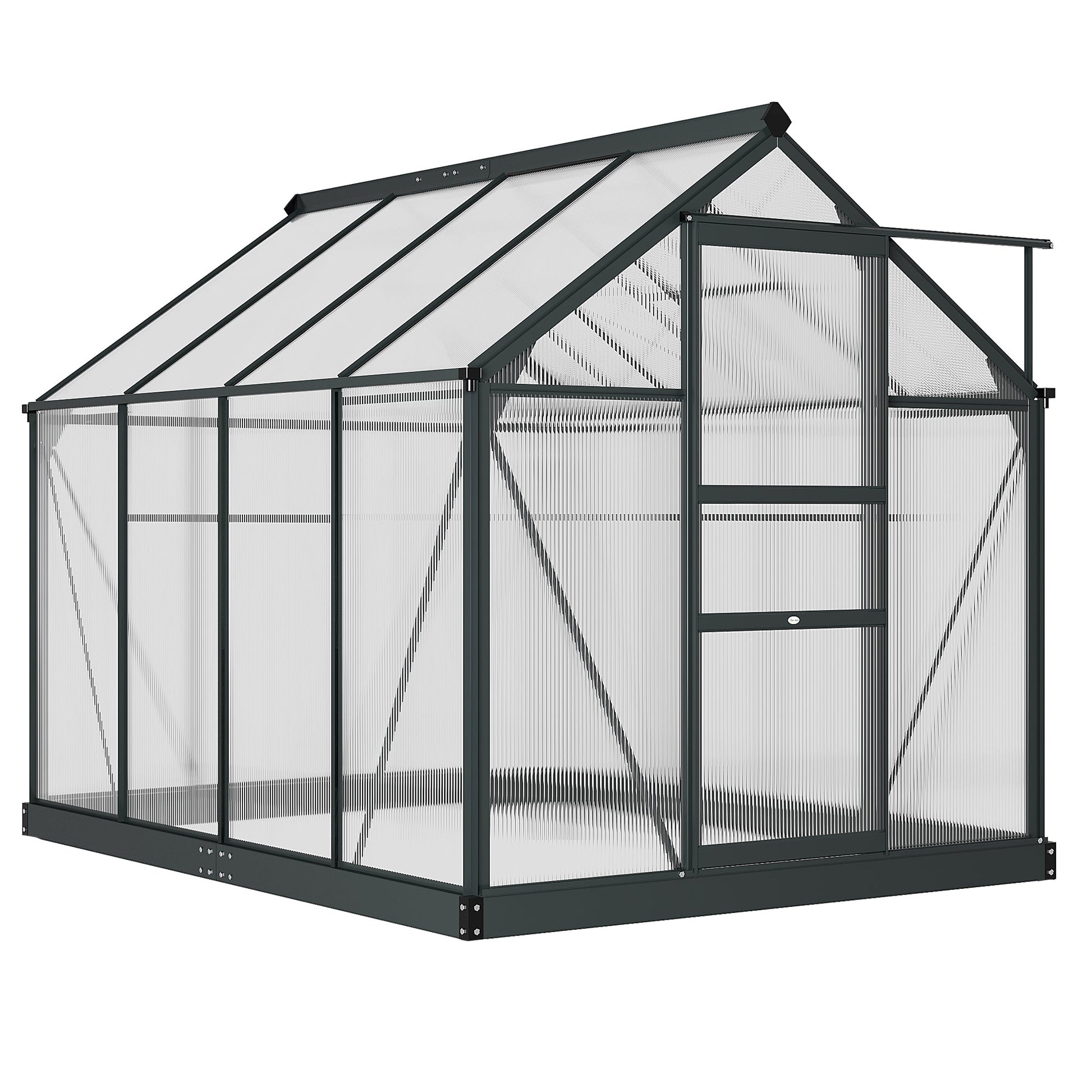 Durable Greenhouse: The Outsunny BloomGreen 6' x 8' Greenhouse features polycarbonate panels and a sturdy aluminum frame for reliable year-round outdoor use.