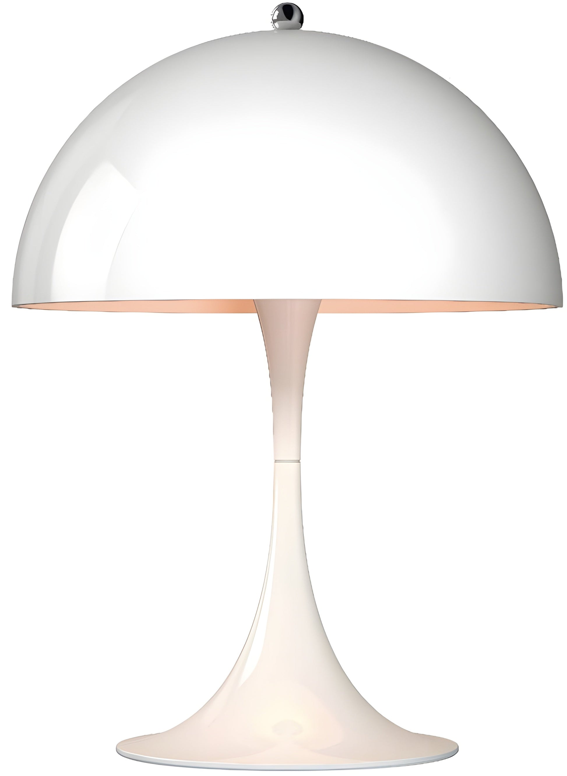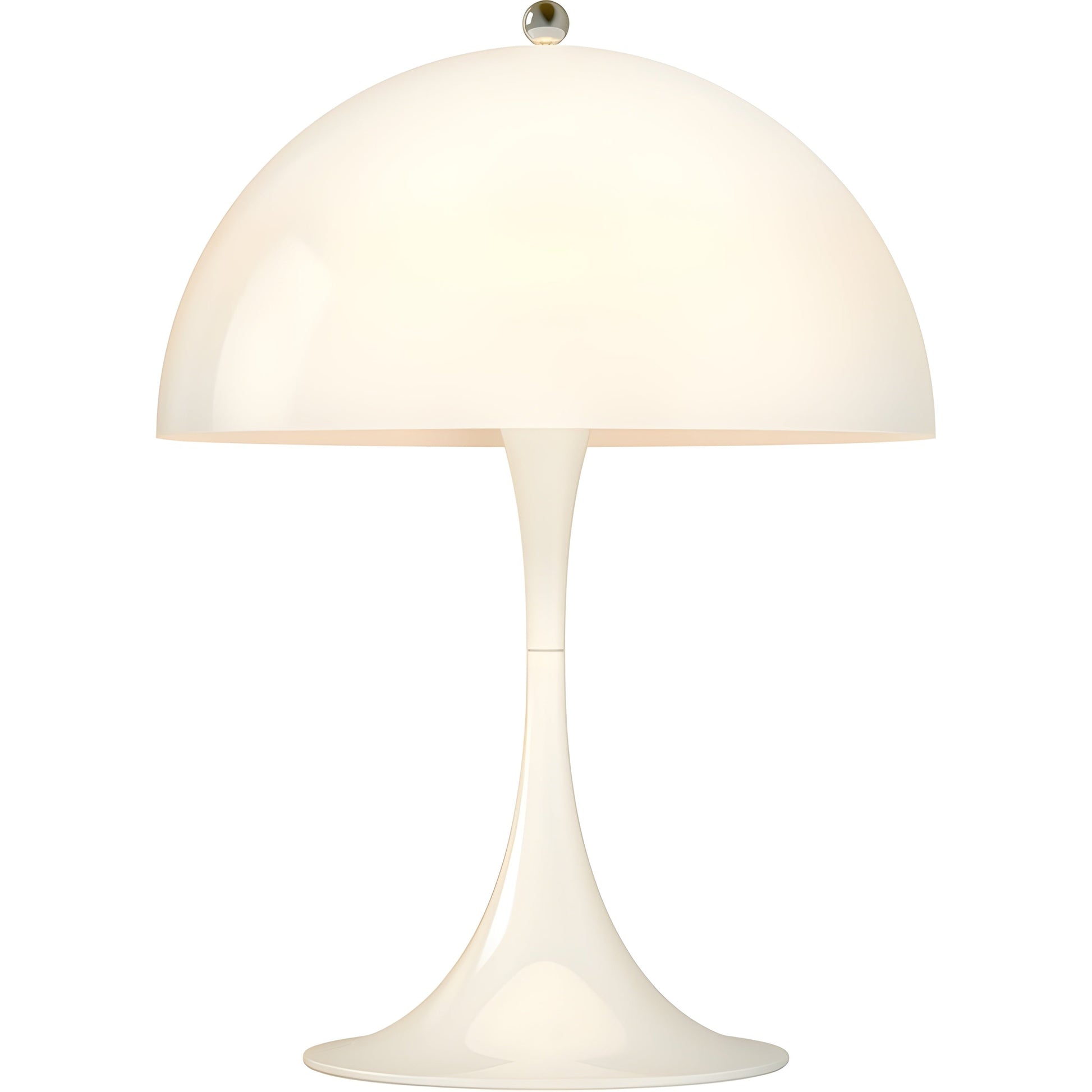 The Panthella 250 Table Lamp by Louis Poulsen is a design classic created by Verner Panton in 1971. Its distinctive half-sphere shade and trumpet-shaped base provide a soft, even glow, creating a warm atmosphere. Measuring 9.8 inches in diameter and 13.2 inches in height, it fits perfectly on small tables, shelves, or windowsills. With its sleek and compact form, this Louis Poulsen table lamp enhances both modern and traditional interiors.