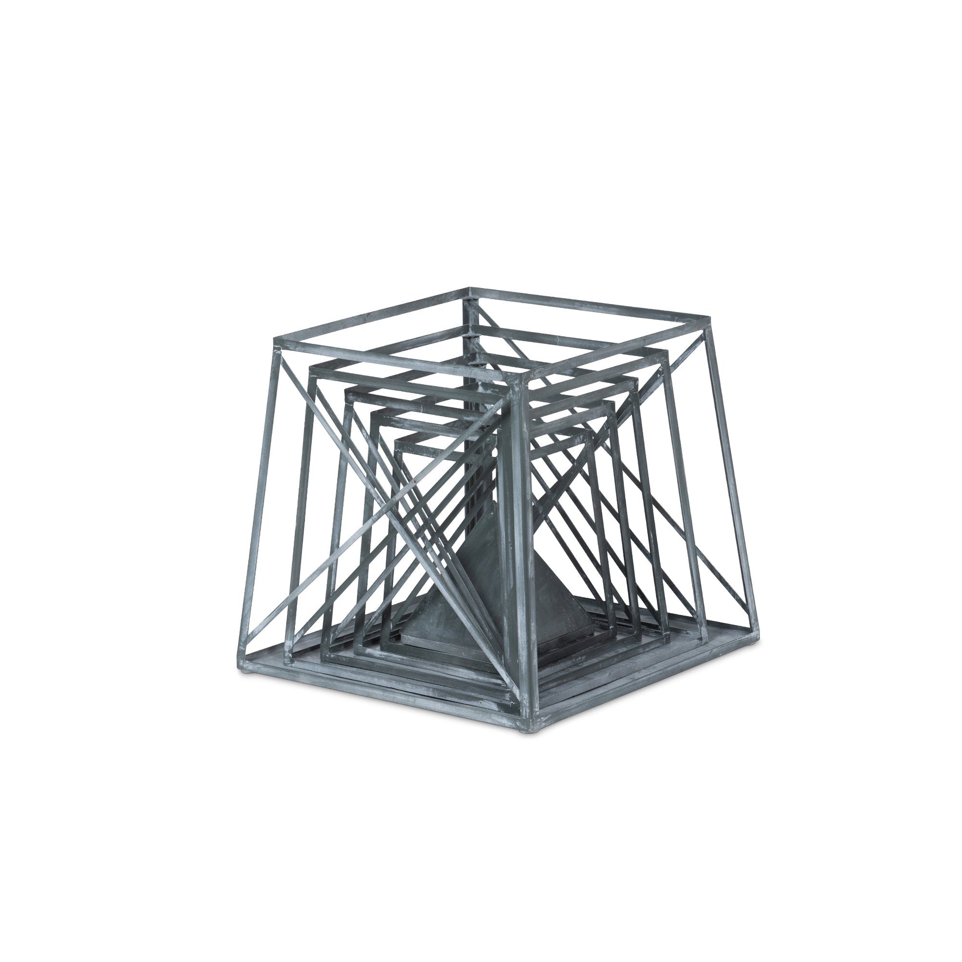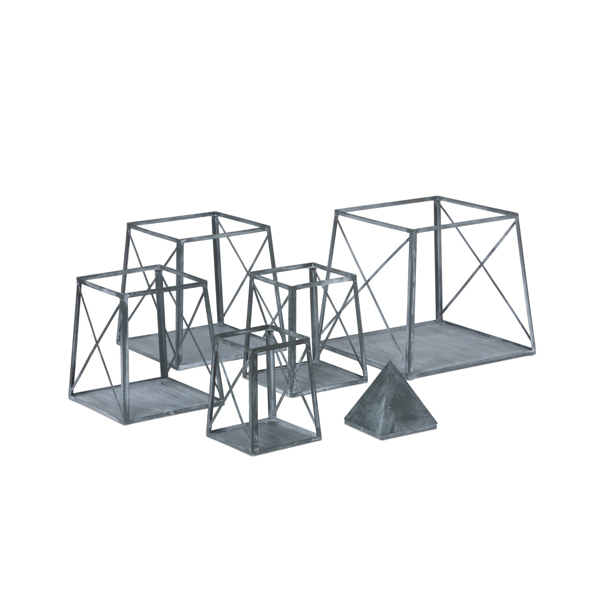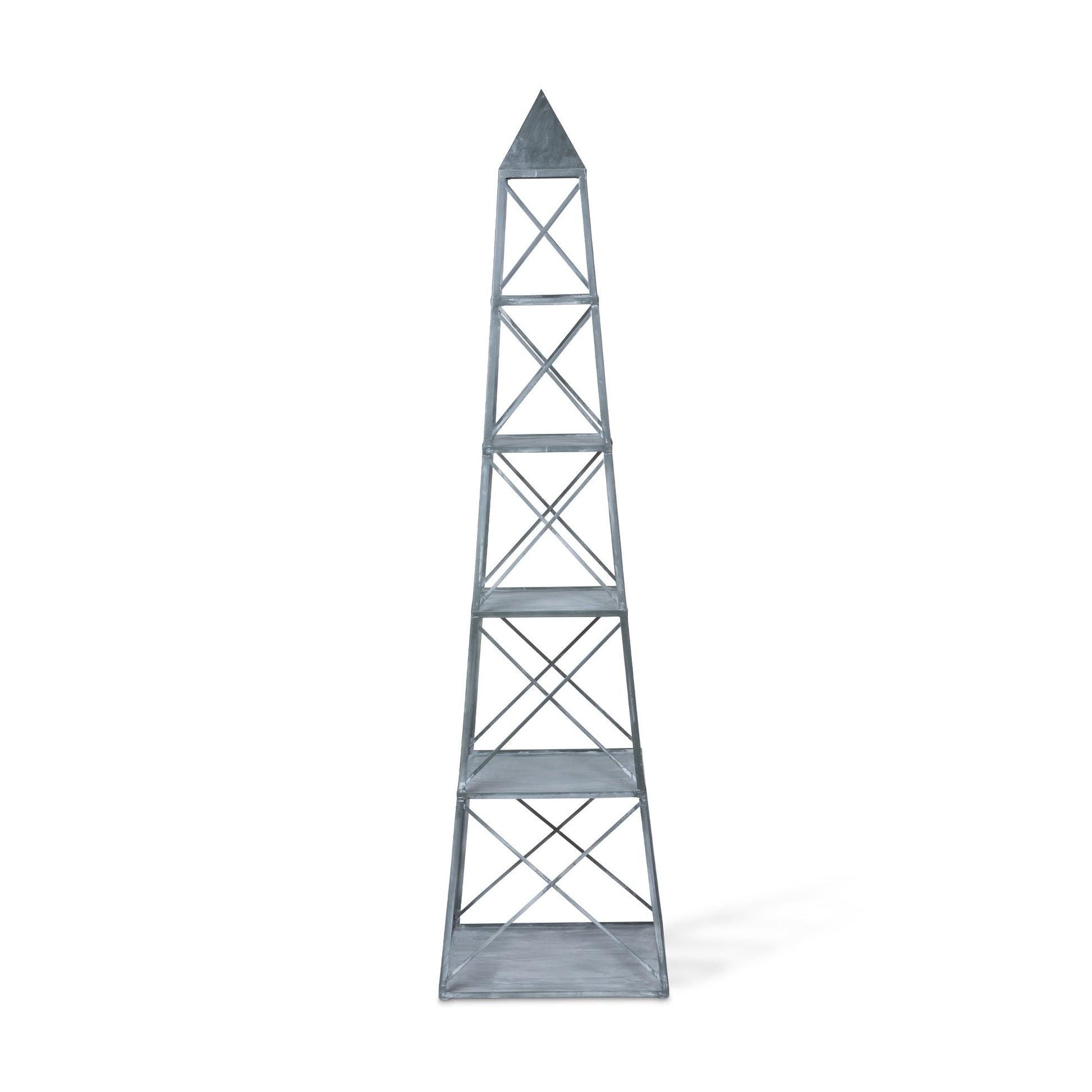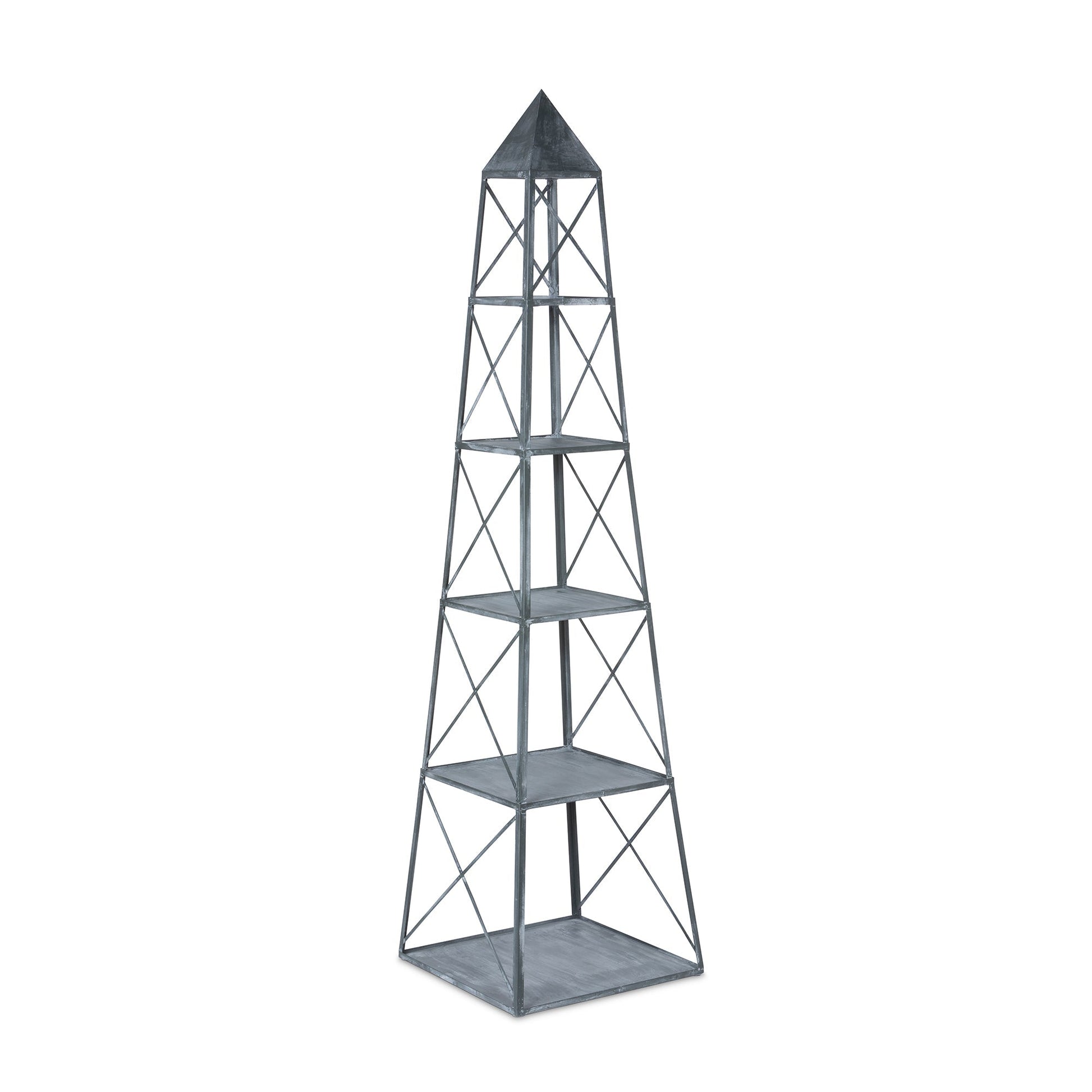 The Stackable Galvanized Obelisk is a lightweight display shelf with ample storage. Its five graduated tiers are crafted of galvanized metal accented by crisscross detailing and topped off with a signature pyramidion. Open on two sides, the stackable storage is easy to move and comes apart so that it can be displayed in multiple ways.