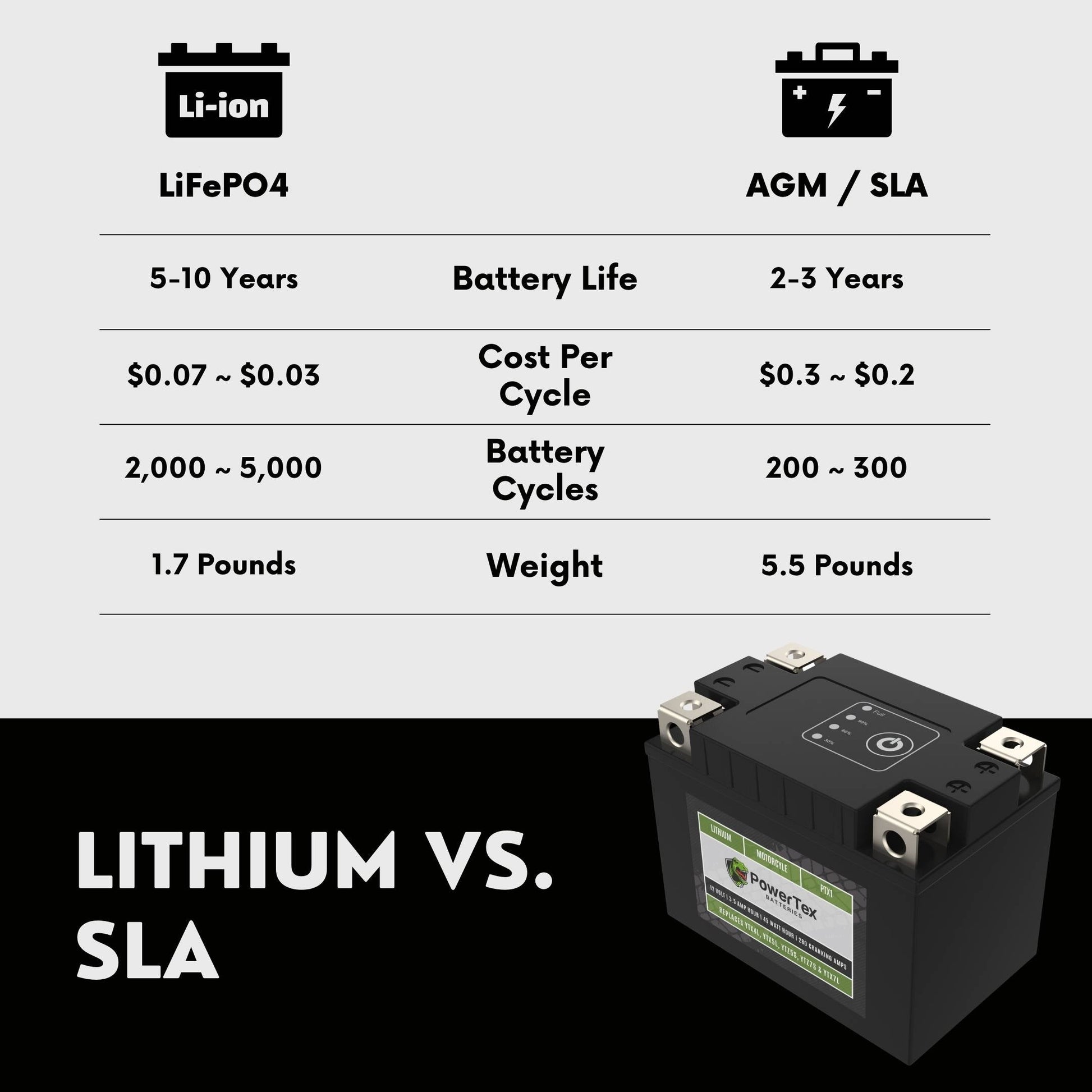 Say goodbye to heavy, short-lived, and unreliable batteries. Choose the Powertex PTX1 Lithium Powersport Battery and experience the difference that LiFePO4 technology brings.