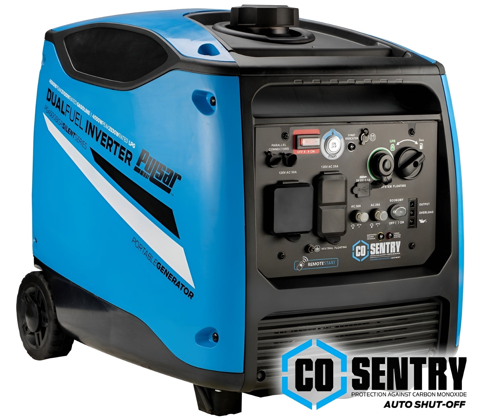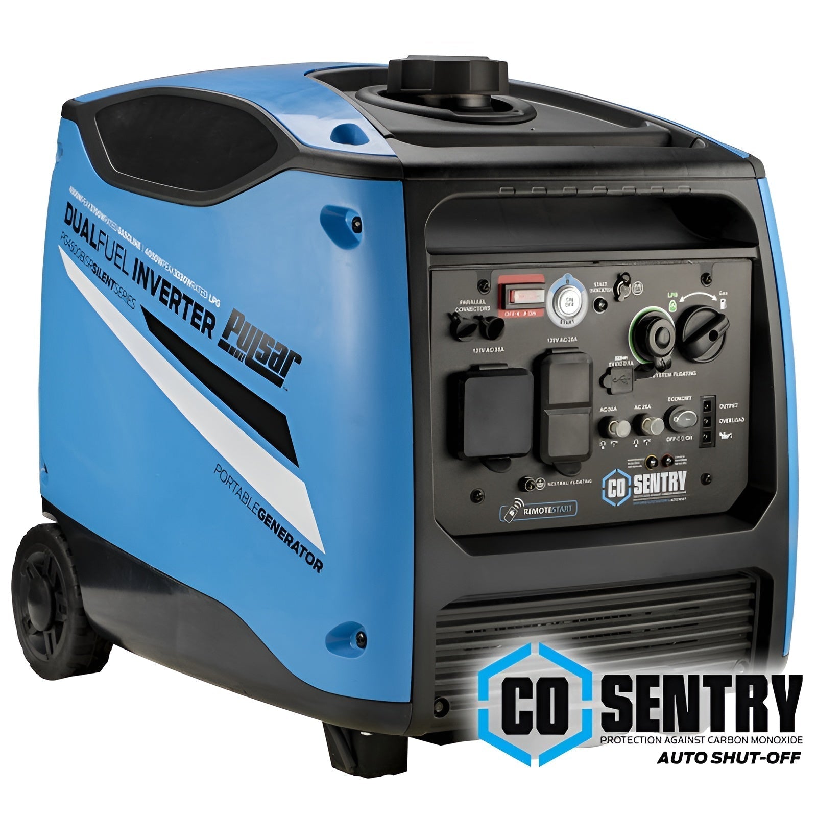 And with parallel capability, you can easily run two generators in tandem to effectively increase power output without the hassle of managing a larger unit. Whether you need to power your RV, home appliances, or power tools on a job site, the Pulsar 4500-watt dual fuel inverter generator has you covered.