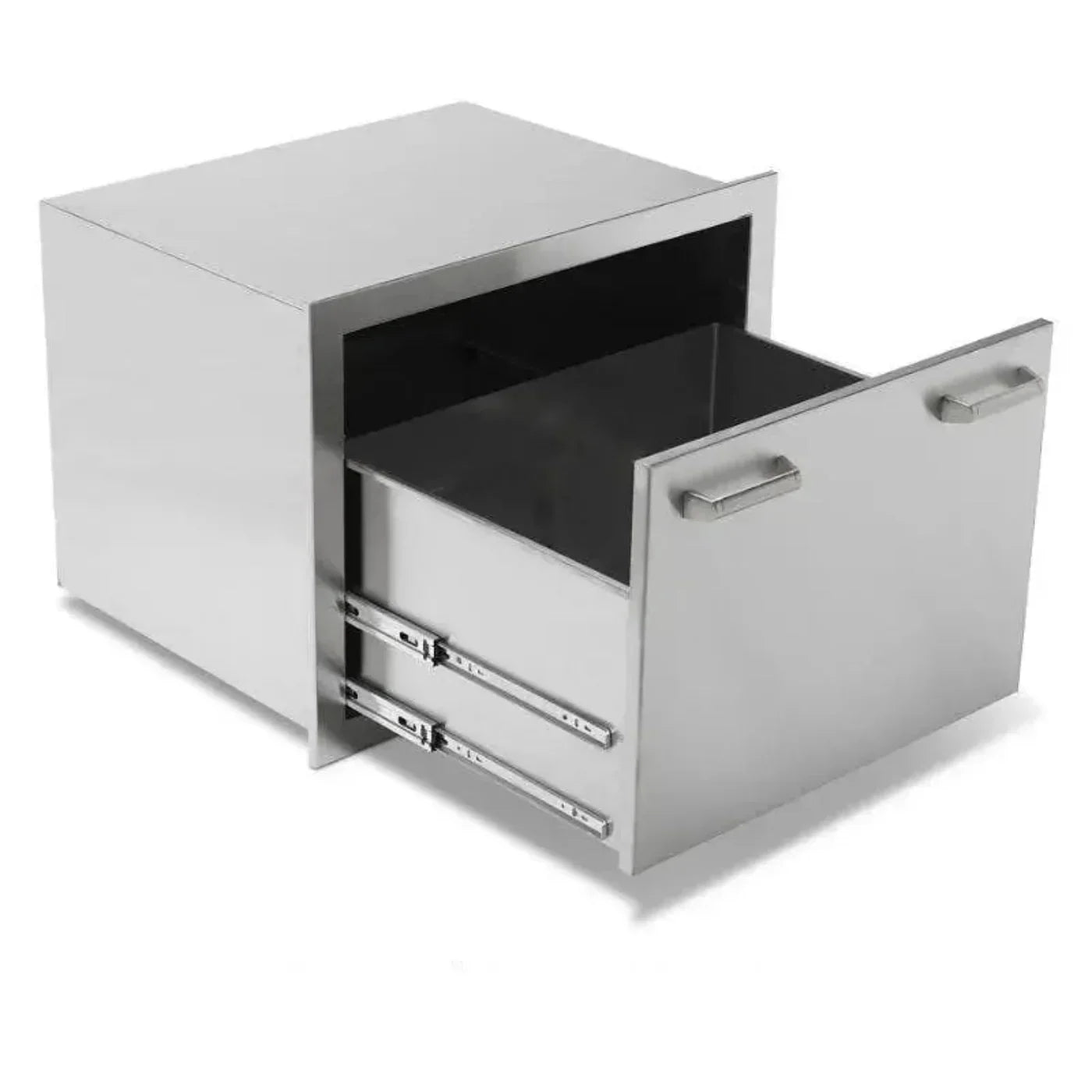 Constructed with durability in mind, this ice drawer features 18-gauge, 304-stainless steel construction, providing robustness to withstand outdoor elements and frequent use. The full-length commercial-grade ball bearing drawer glides ensure smooth and effortless operation, making it easy to access your ice supply whenever needed.