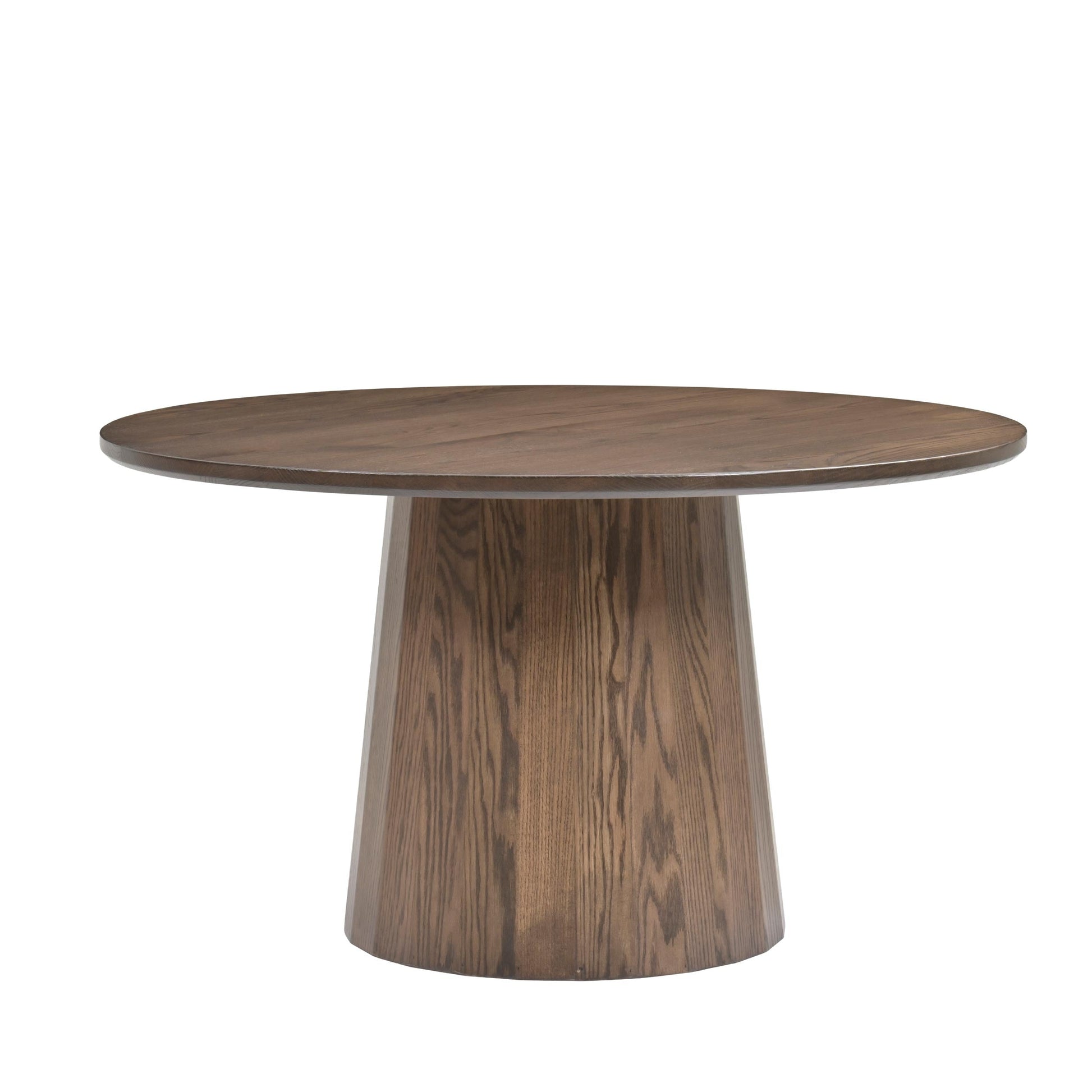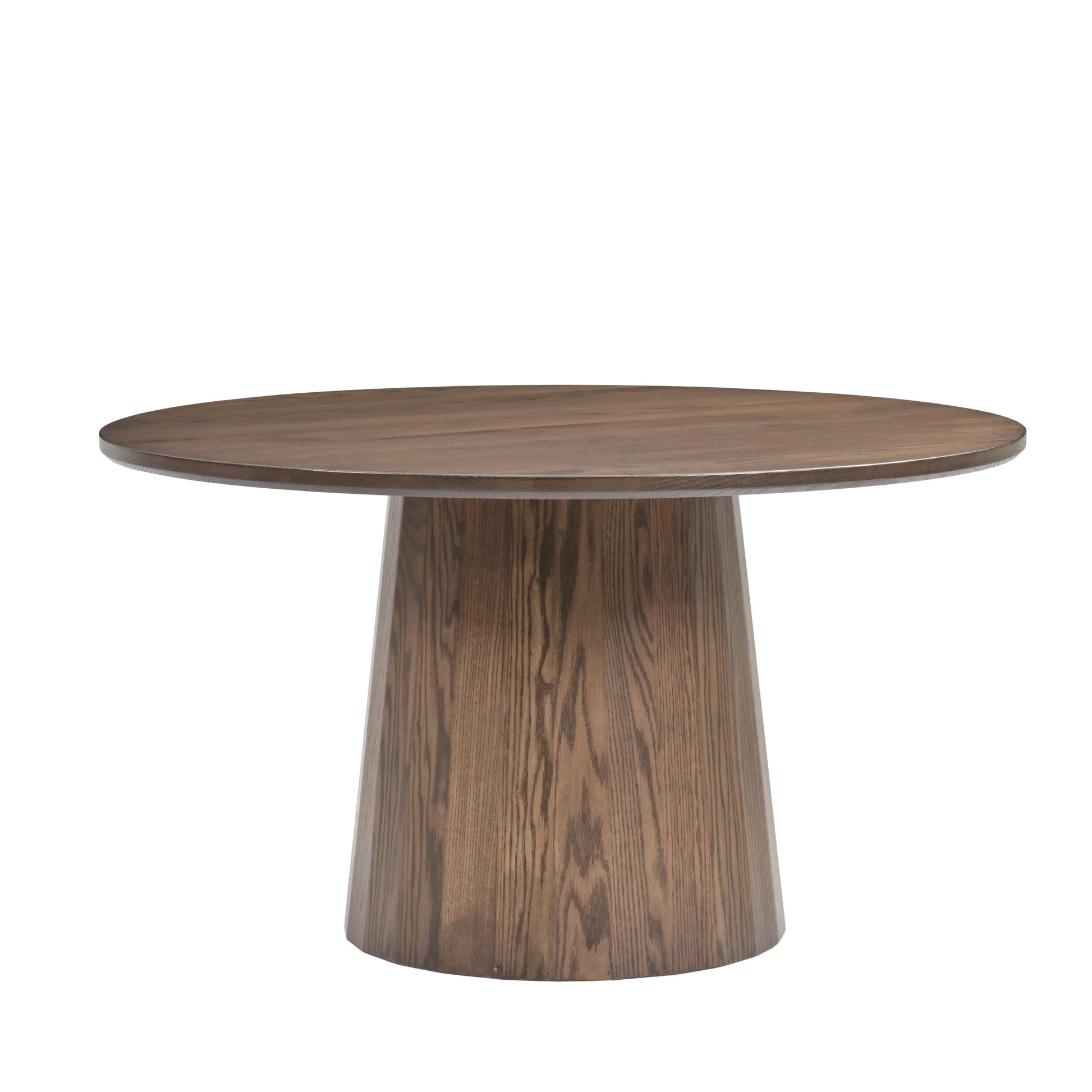 The Tulsa Dining Collection celebrates clean geometry and contemporary warmth with its minimalist silhouette and commanding presence. At the center is the bold pedestal table—expertly crafted from solid hardwood—featuring a round top and a gracefully tapered cylindrical base that anchors the design with sculptural elegance.