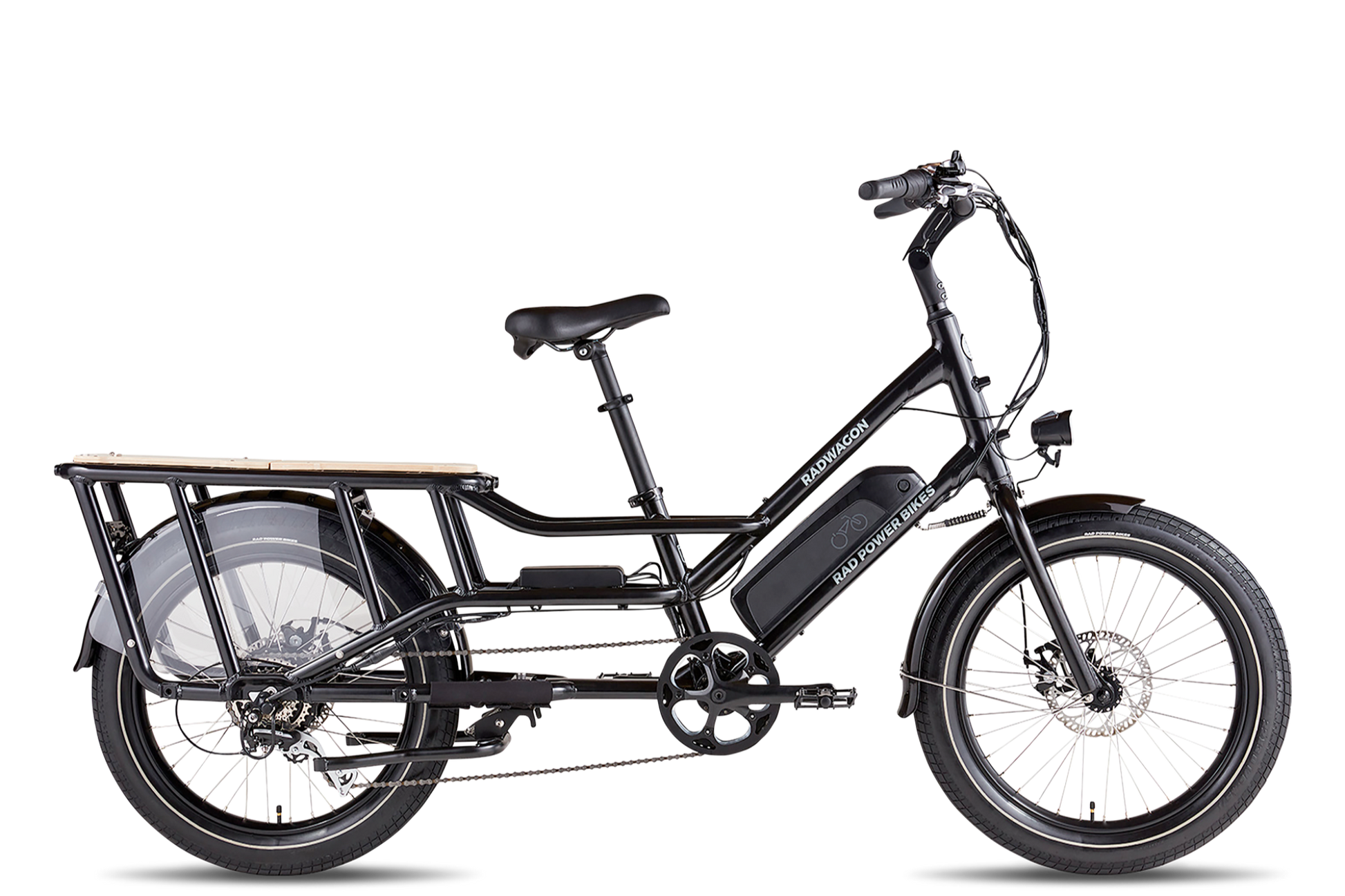 The RadWagon 4 is a leader in electric cargo bikes. With a comprehensive redesign for lower center of gravity, patent-pending frame design, 350 lb payload capacity, custom tires & geared hub motor for improved uphill hauling capabilities, the RadWagon 4 is the raddest car replacing ebike we've ever created.