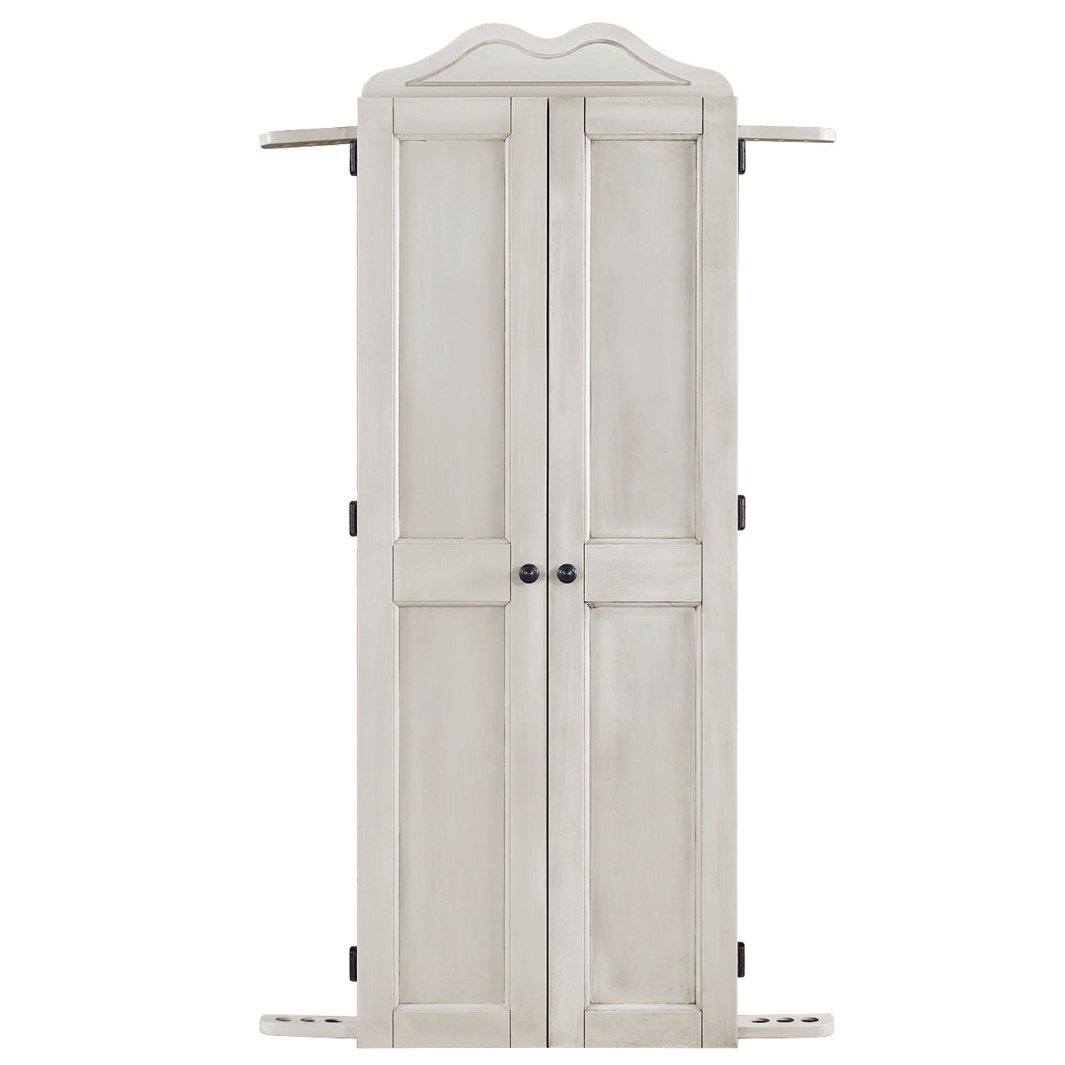Protective cabinet design: Doors help safeguard walls from stray darts and conceal accessories when not in use.