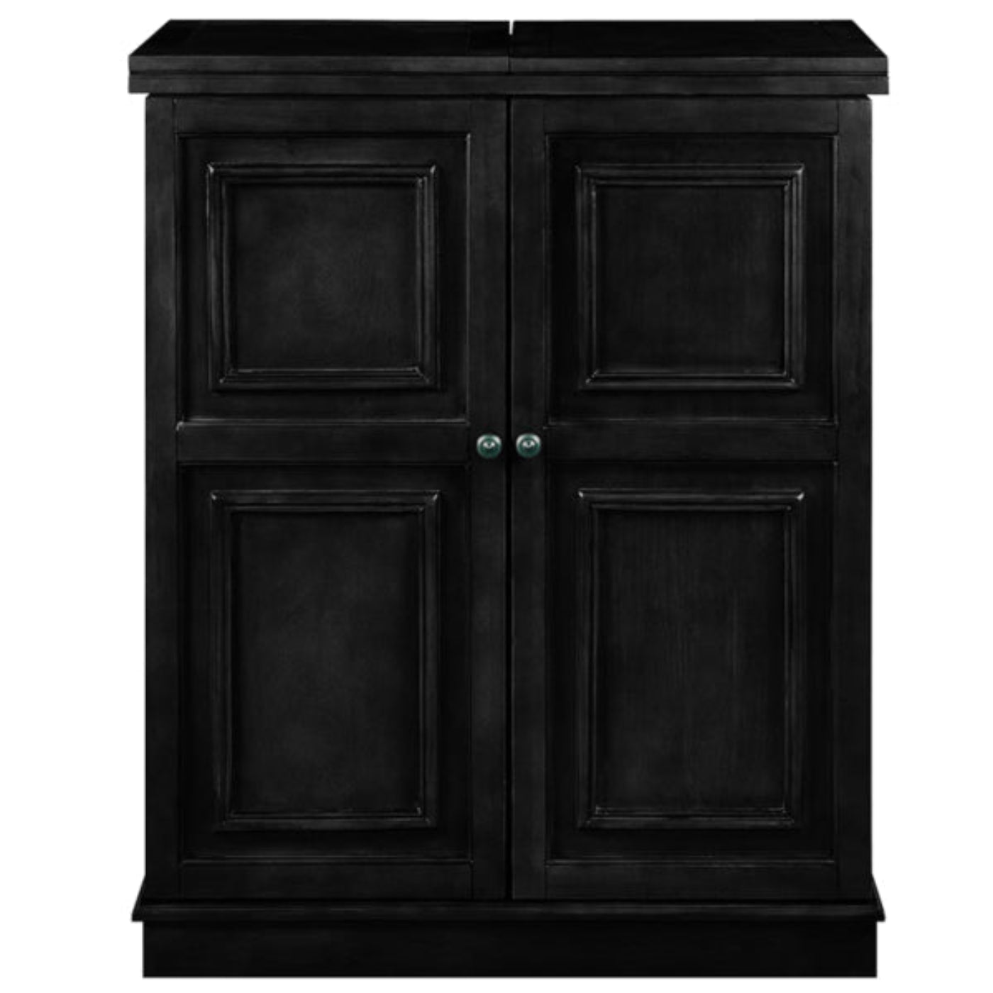 Simply open this solid wood portable folding bar to reveal ample interior storage for bottles, glassware, and accessories.