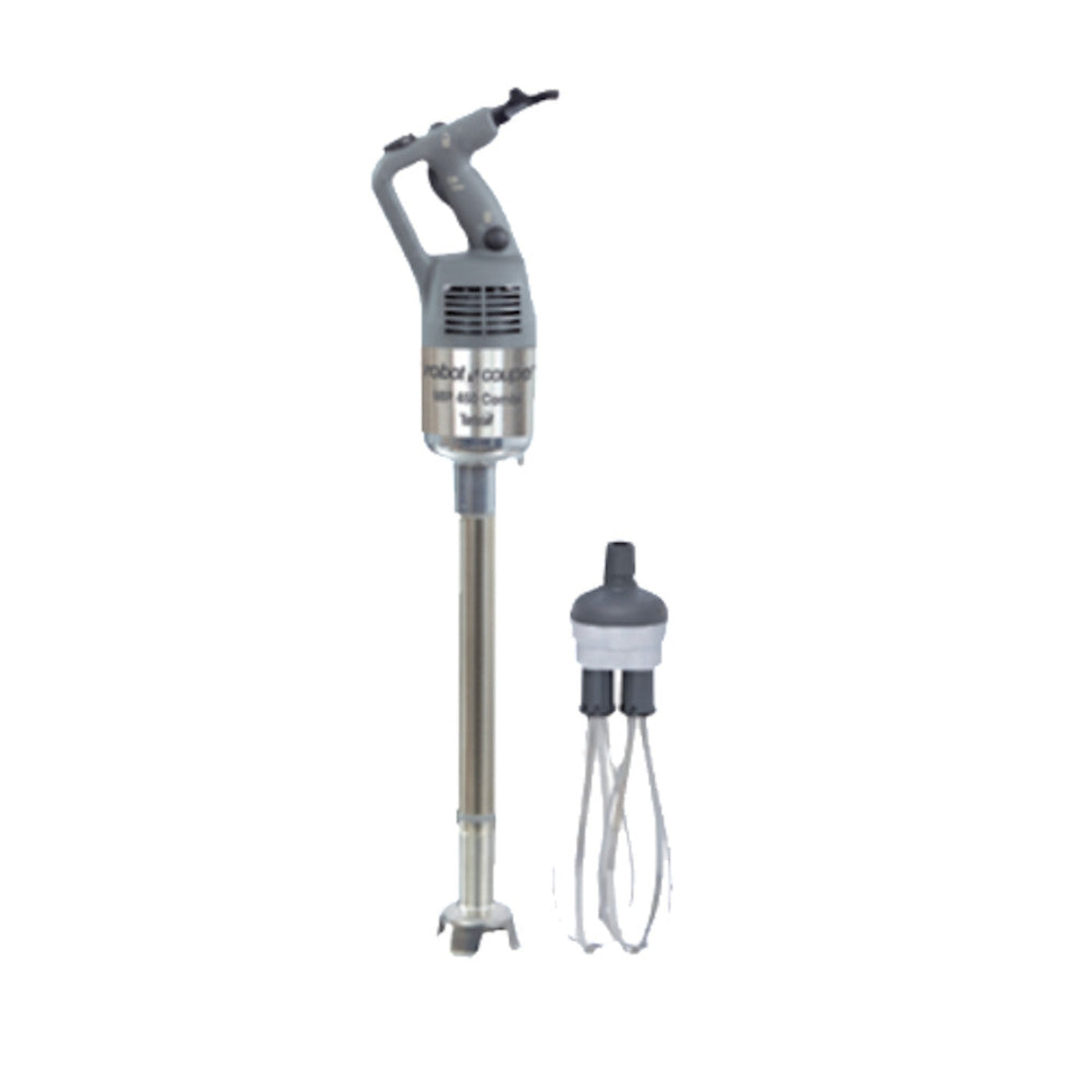 The Robot Coupe MP 450 Turbo COMBI is an 18" commercial immersion blender with whisk attachment.