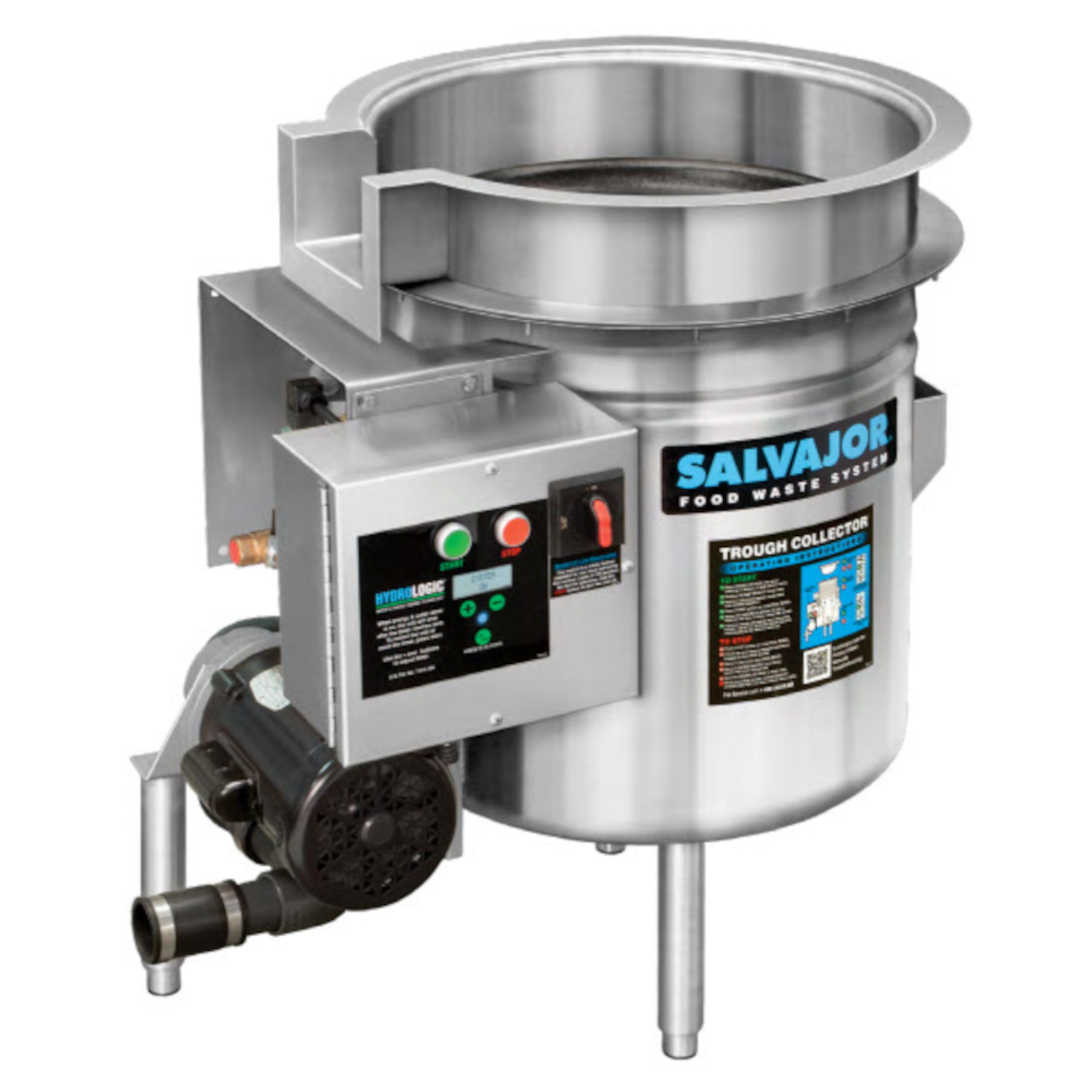 Trough Collector, trough conveyor & collecting system (widely accepted in areas where disposers are restricted), HYDROLOGIC with LCD readout, trough diffuser, salvage basin & silverware trap, scrap basket, 3/4 HP corrosion-resistant pump, pump intake screen ,stainless steel construction, start/stop pushbutton control panel, with safety line disconnect & automatic shut off timer, UL, CSA, CE, NSF