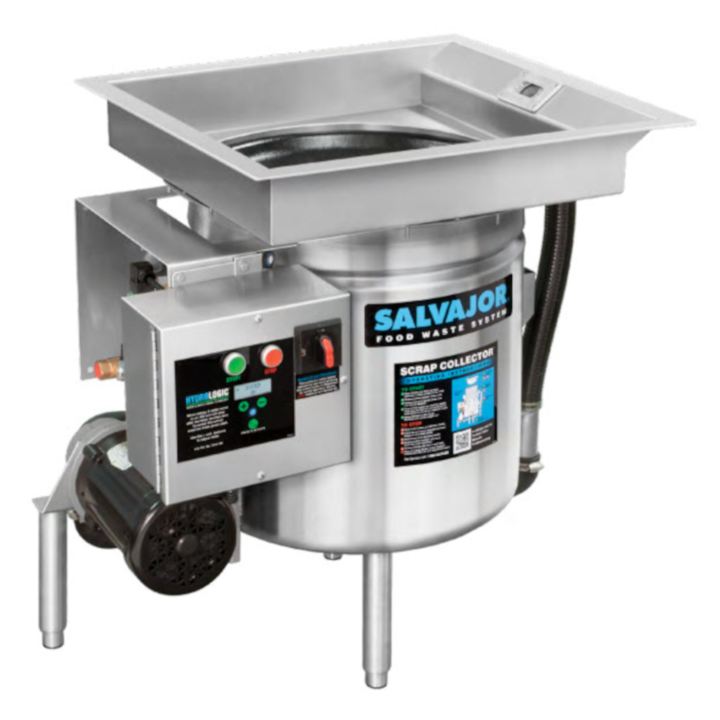 Scrap Collector, scrapping, pre-flushing & collecting system (widely accepted in areas where disposers are restricted), NEMA 4 HYDROLOGIC control panel with patented operator sensor, two water saving modes (timed run & auto start/stop), safety line disconnect, LCD readout, salvage basin & silverware trap, scrap basket, 3/4 HP corrosion-resistant pump, pump intake screen, stainless steel construction, UL, CSA, CE, NSF