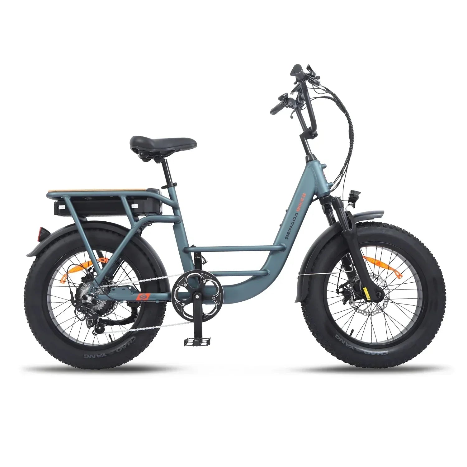 A: The Senada Osprey is a versatile all-terrain electric bike featuring a step-thru frame, designed for both urban commuting and off-road adventures.