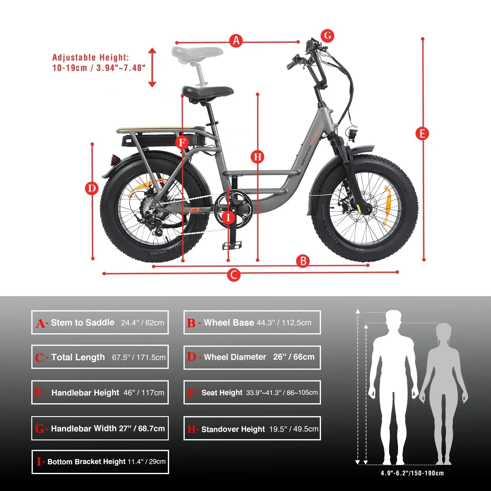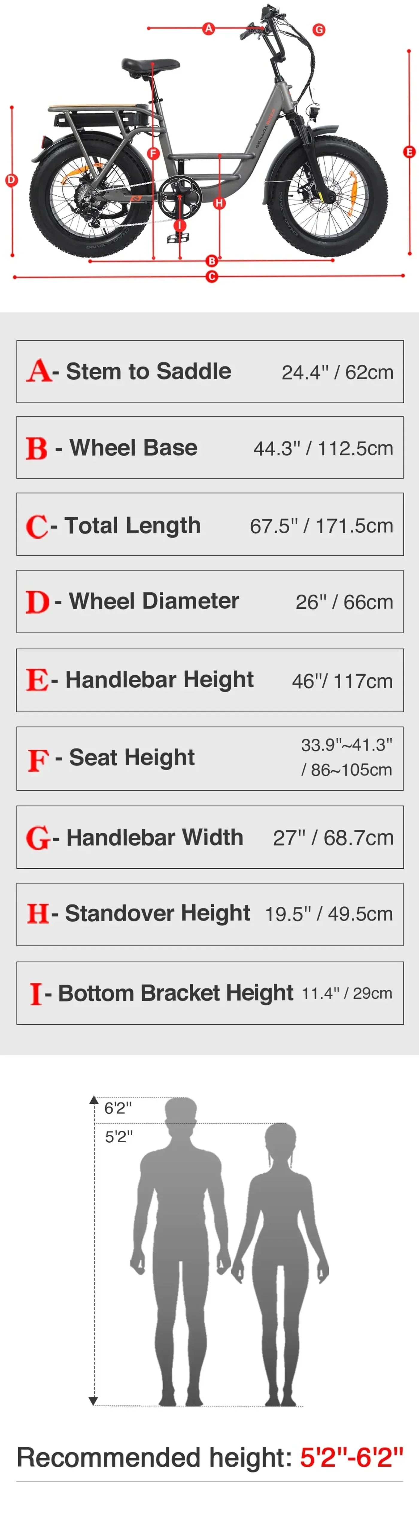 Bike Dimensions (H x L) | Height: 46" (117 cm) |