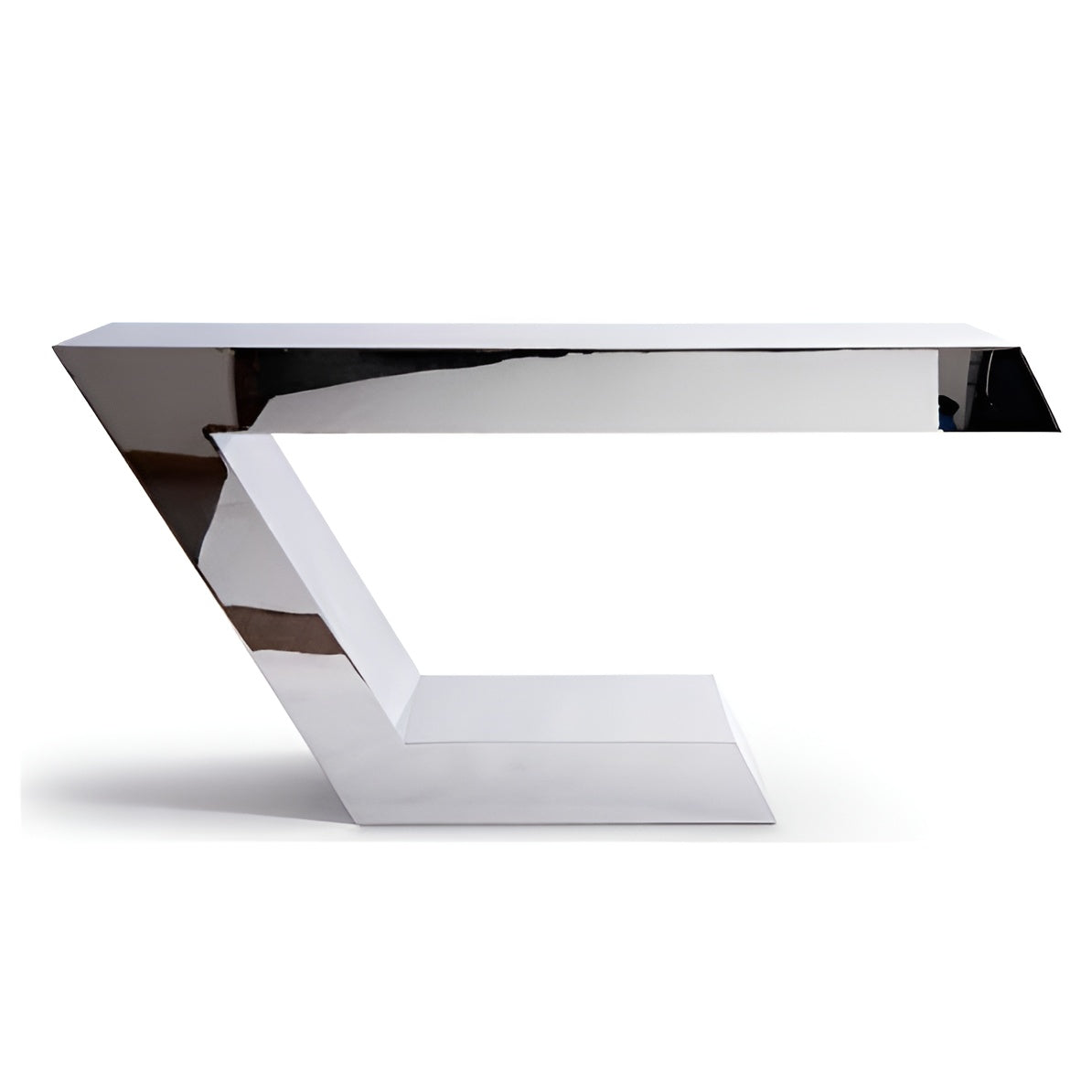 A: The Pisa Console Table features a polished stainless steel frame, a modern geometric design, and a durable top, offering a blend of style and functionality perfect for entryways, hallways, or living spaces.