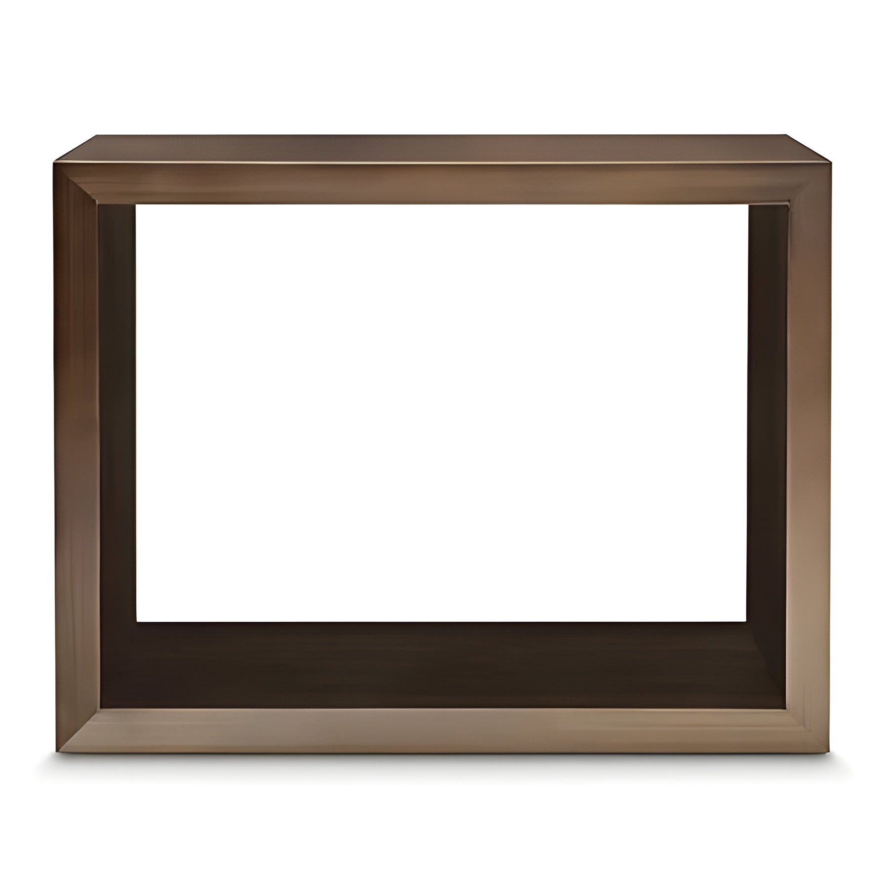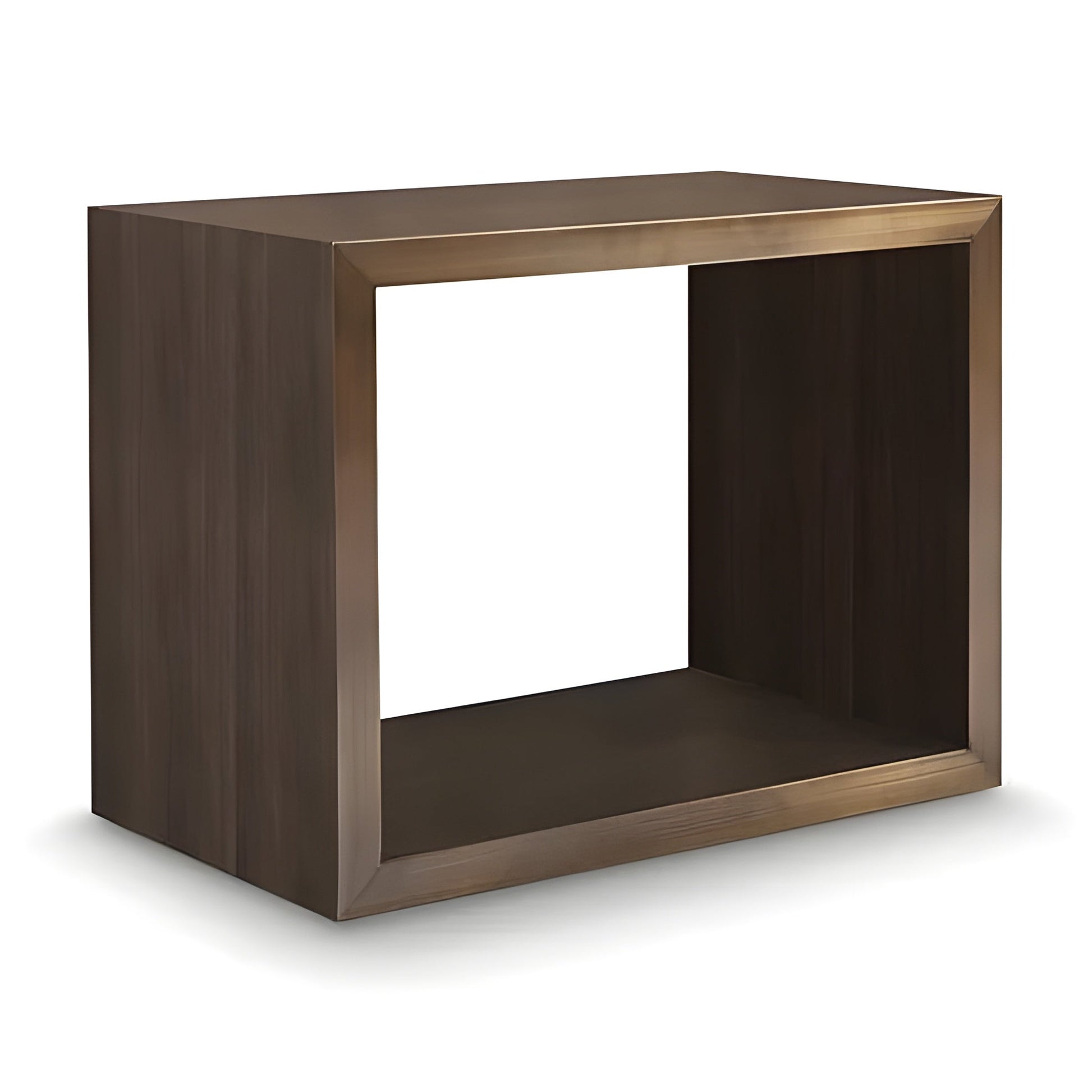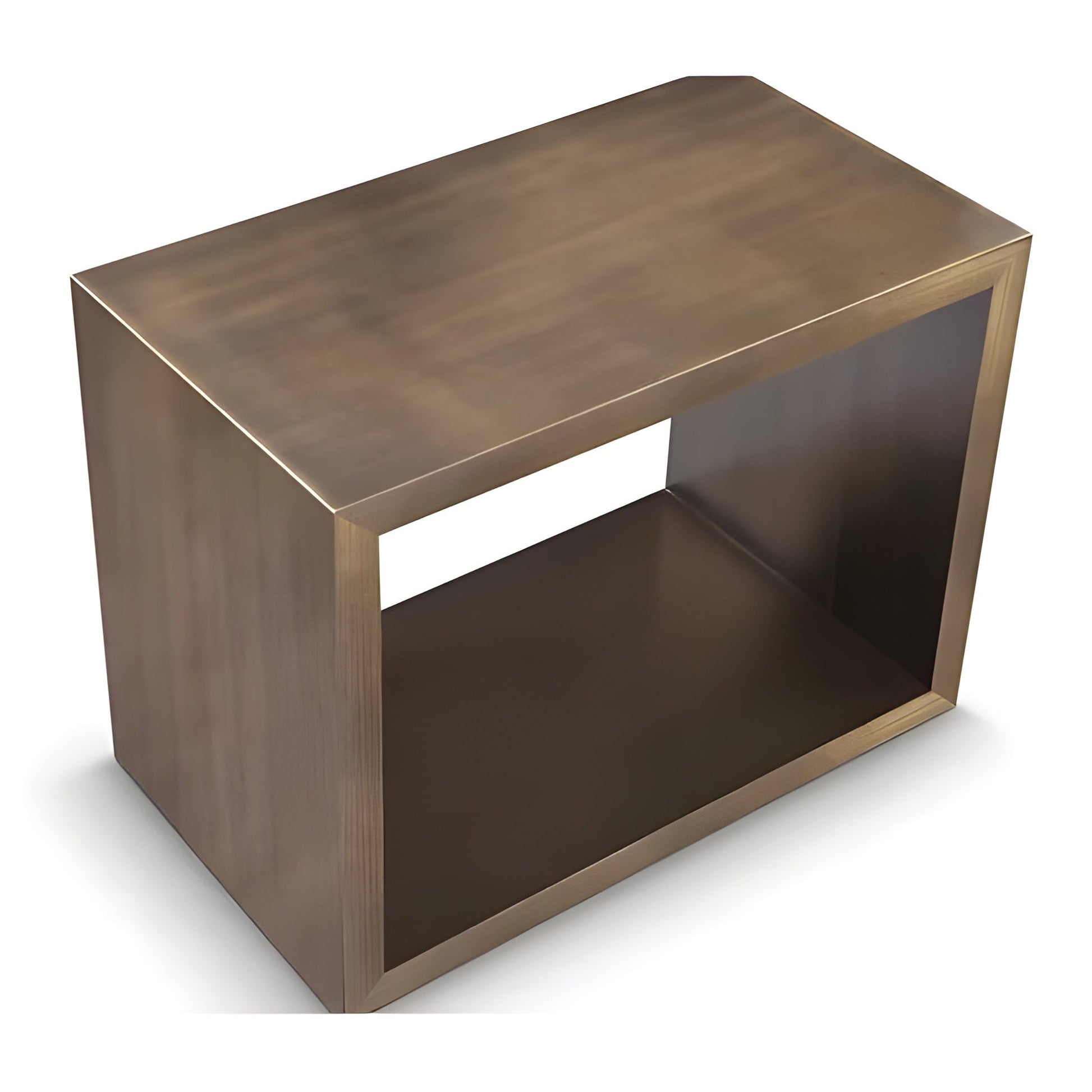 The "Piero" side table is a beautifully scaled simple rectangular form. Both horizontal surfaces are usable for storage or display. The material is stainless steel with a hand applied antique oiled Bronze finish that gives this table a handsome ageless quality. This is a modernist masterpiece of refined simple form with maximized function. The Antique bronze finish makes this table a beautiful addition to any interior. Award winning furniture designer; Greg Sheres, has been designing timeless classics for over 30 years. His pieces are collected and even sold at auctions.