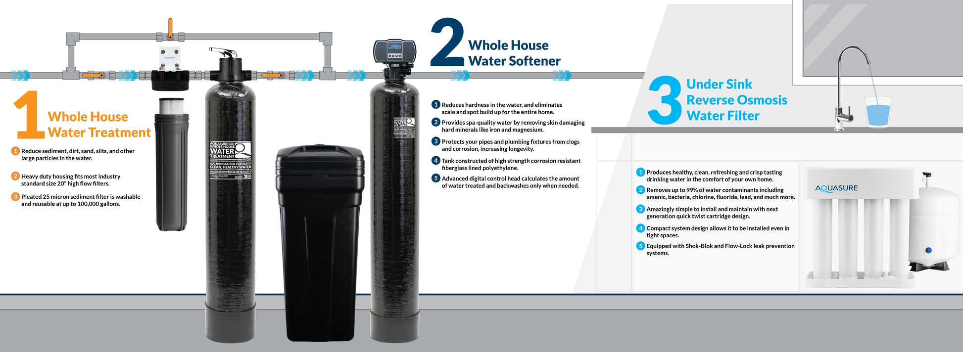 A: It provides comprehensive water filtration, softens hard water, and delivers ultra-pure drinking water through reverse osmosis, ensuring clean and safe water for the entire home.
