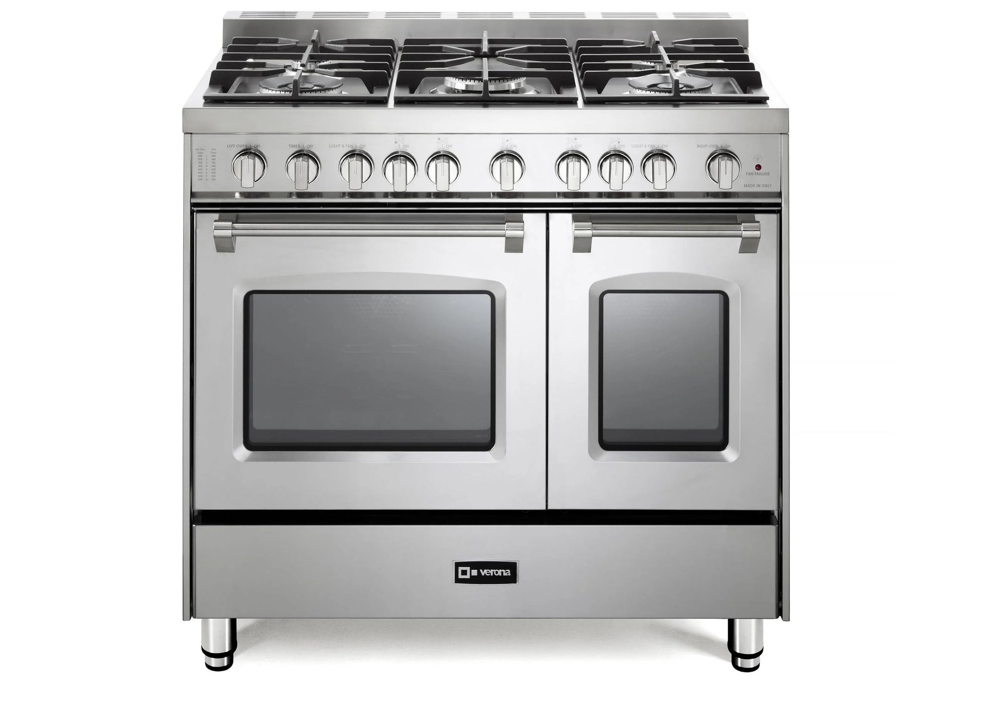 A: A 36″ professional-style gas range with 4 burners, a built-in chromium griddle, and smart Wi-Fi control.