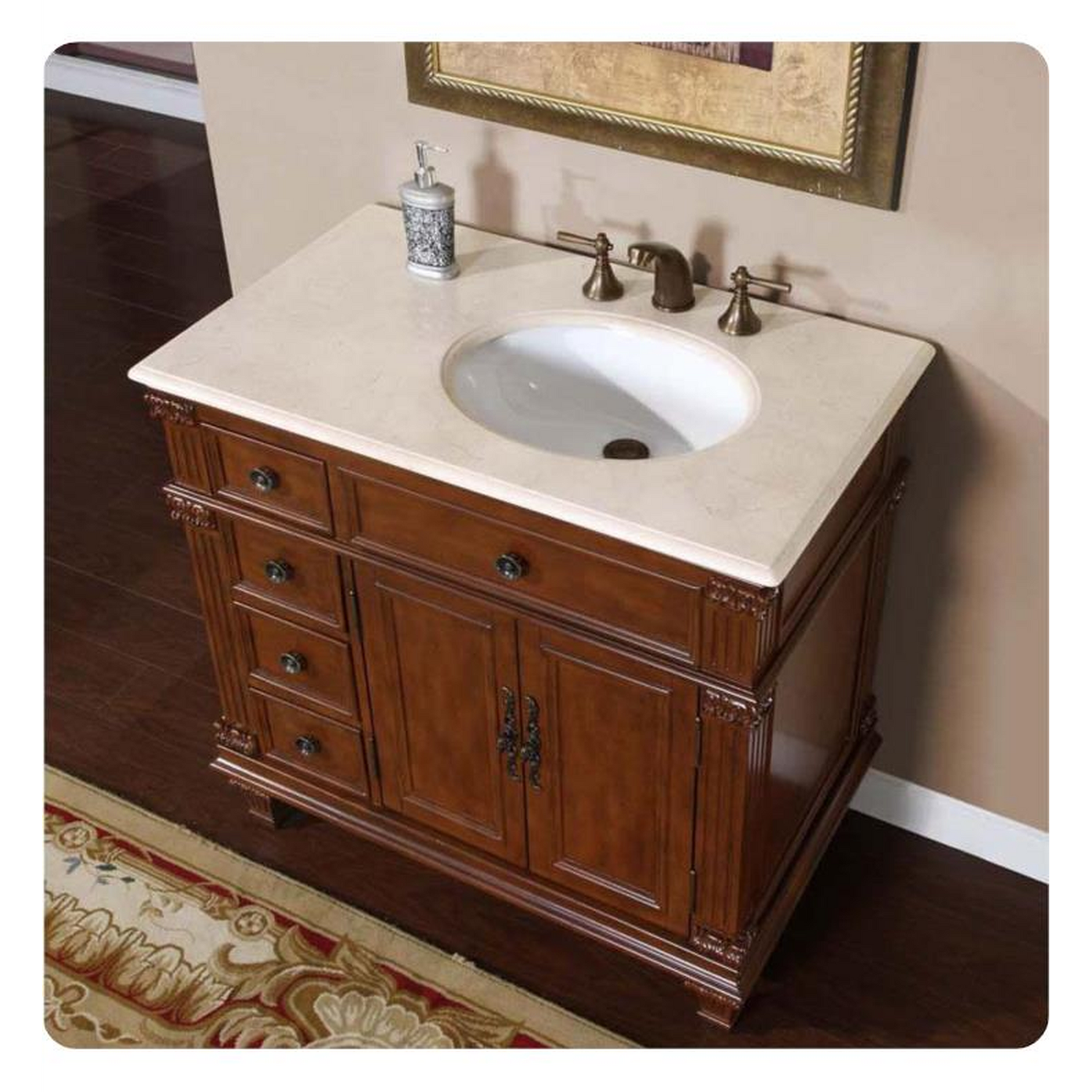 This Victorian designed single sink vanity will offer a classic touch of traditional style to any bathroom decor, and offers ample storage room for you to organize all of your bathroom necessities and accessories. The stone counter top is made of solid crema marfil marble with natural pattern and vein. Featuring our charming Vermont Maple wood finish and recessed panels, this single sink vanity will bring uniqueness and functionality to your bathroom.