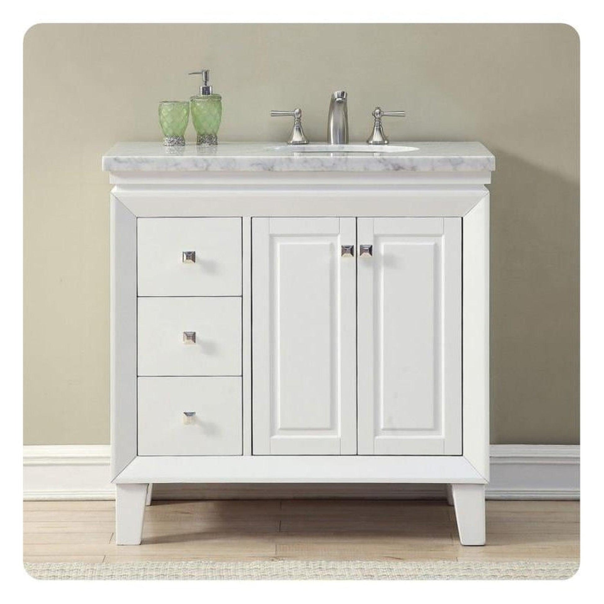 The appealing design of this bathroom vanity is sure to bring a touch of sophistication to any bathroom. This beautiful single sink vanity features its dimensional frame and the all natural solid carrara marble stone top with holes pre-drilled to accommodate any standard 8" widespread faucet of your choice.