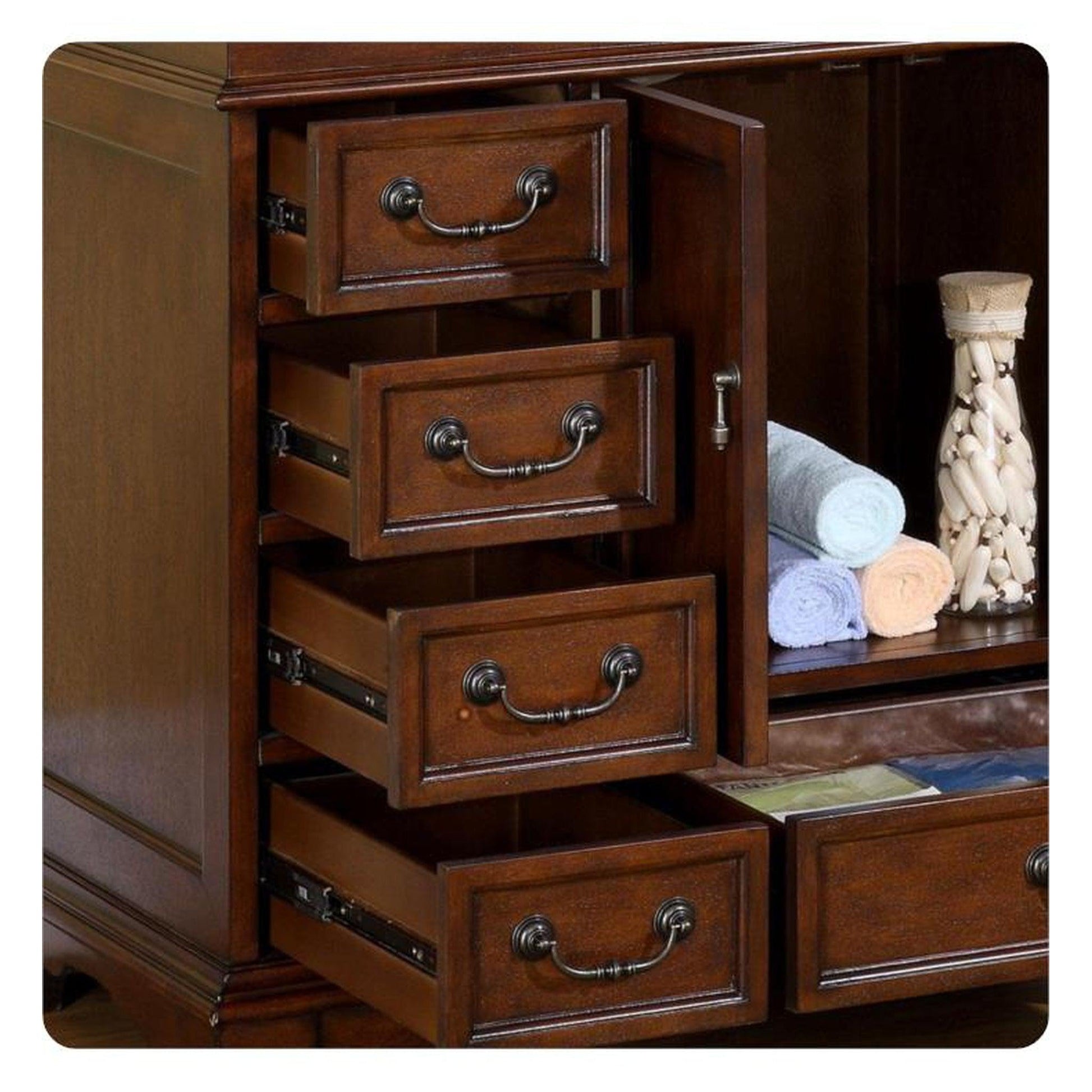 Rich English Chestnut Finish: Adds warmth and classic charm to any bathroom space.