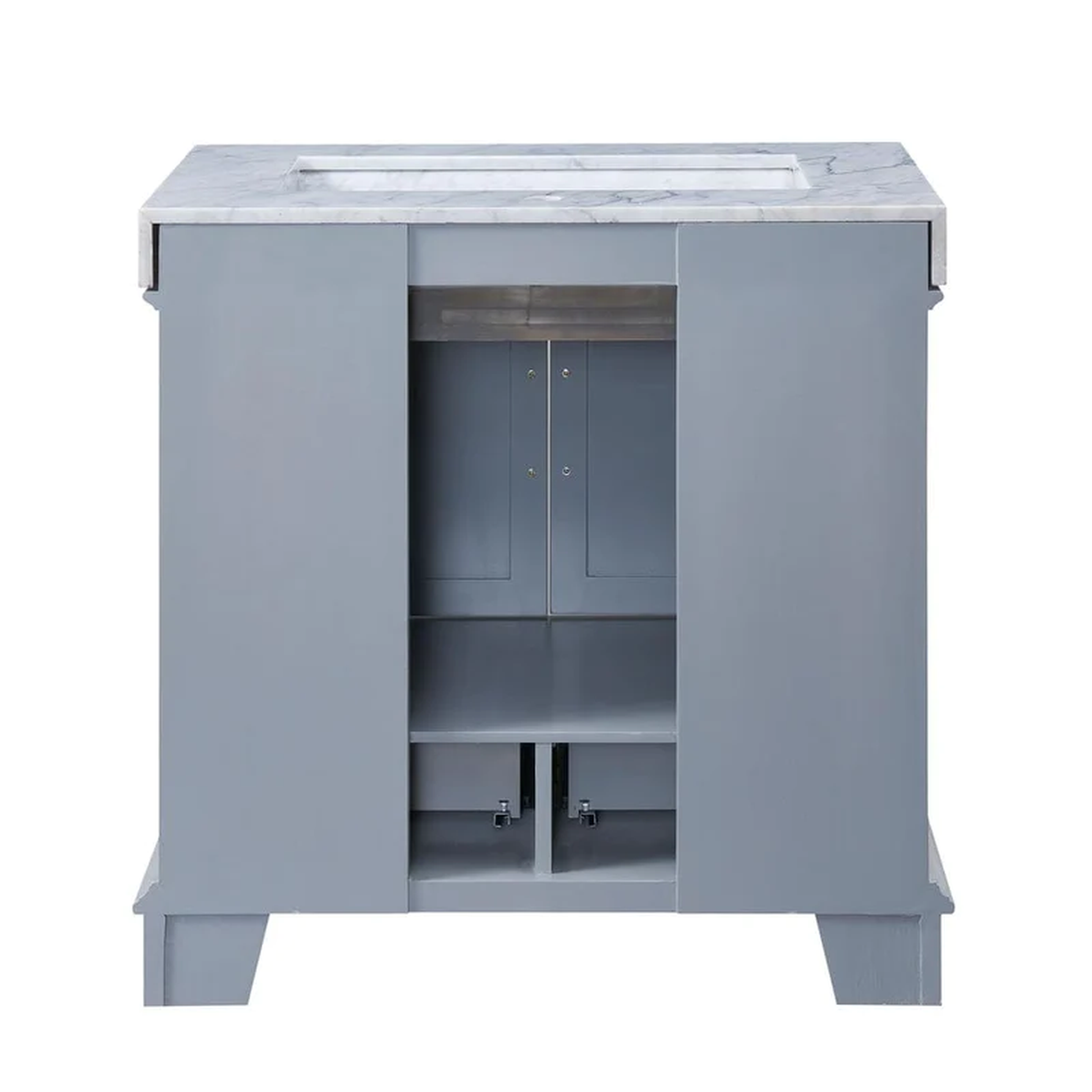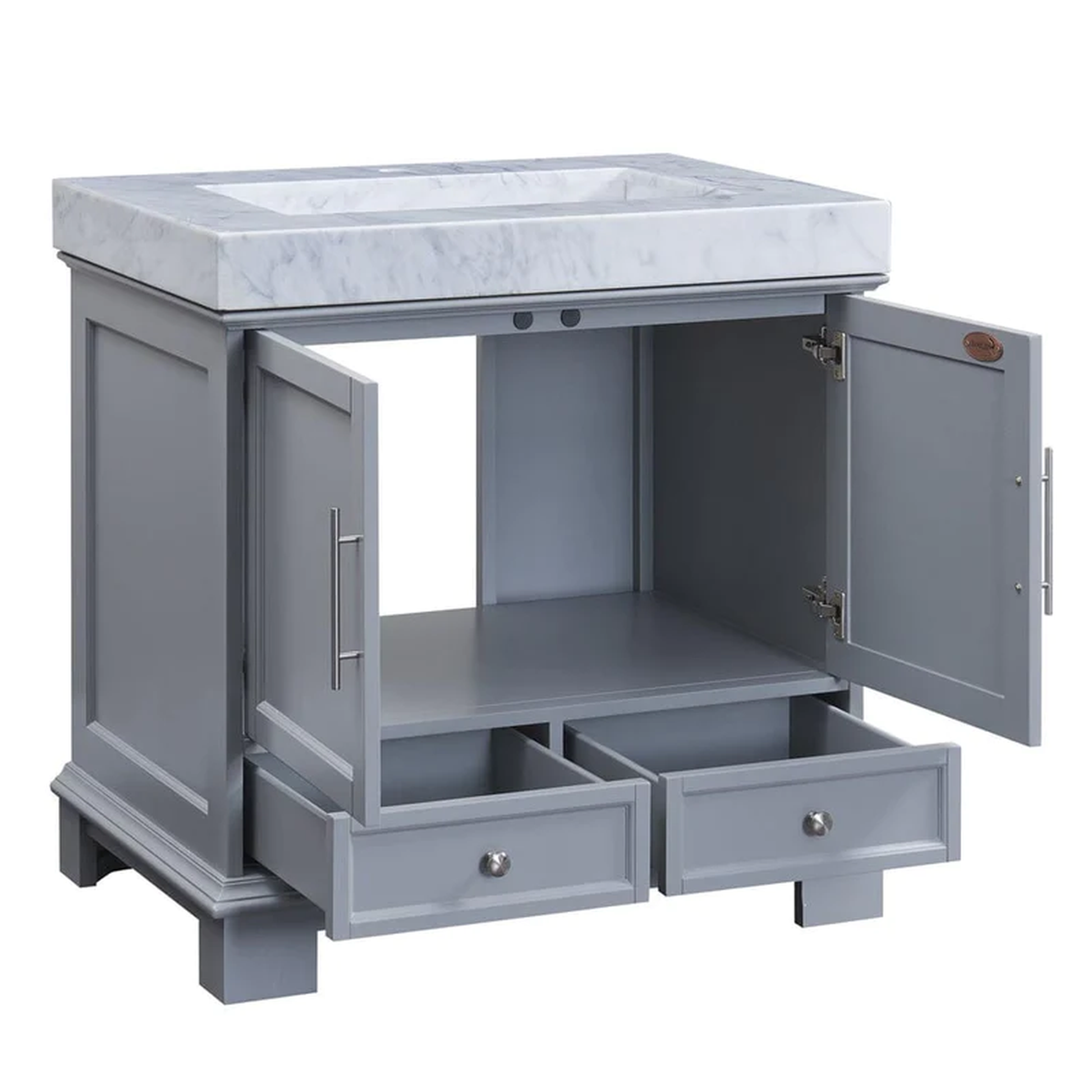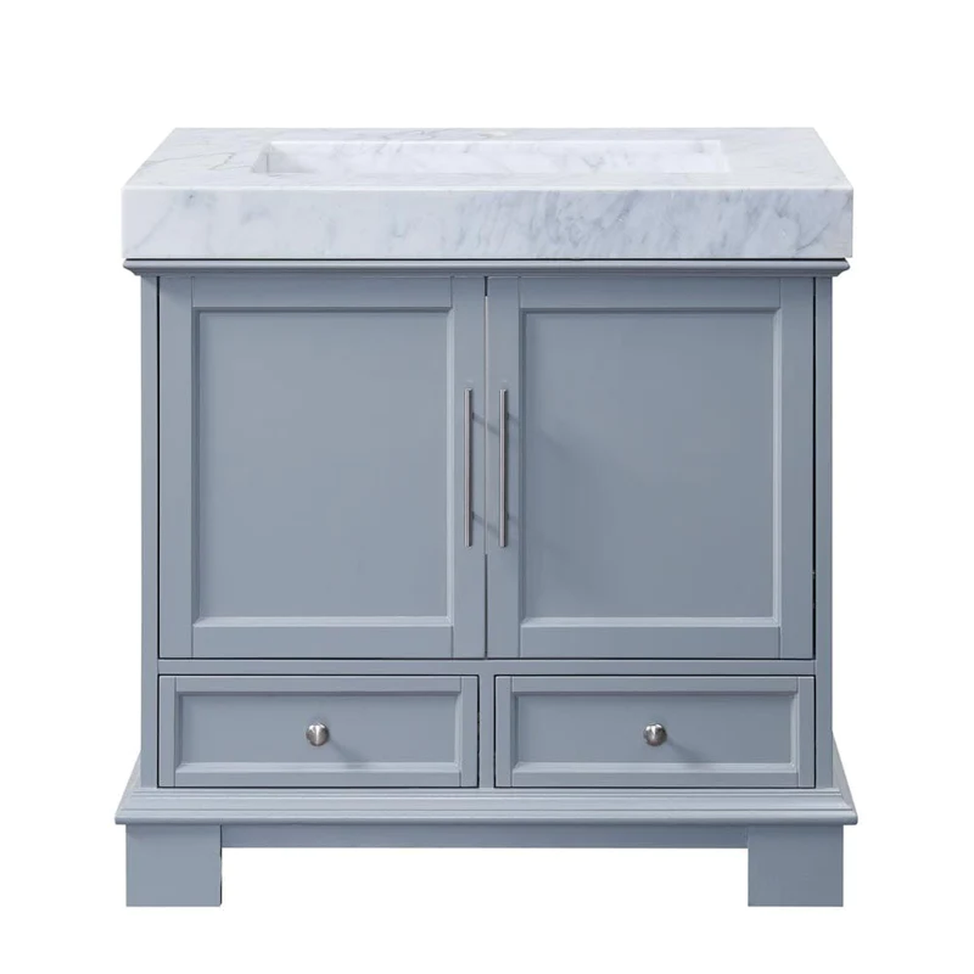 Silkroad Exclusive 36" Single Sink Gray Bathroom Vanity With White Carrara Marble Countertop and Marbled Integrated Ramp Sink - C05036GC_T0136WRC