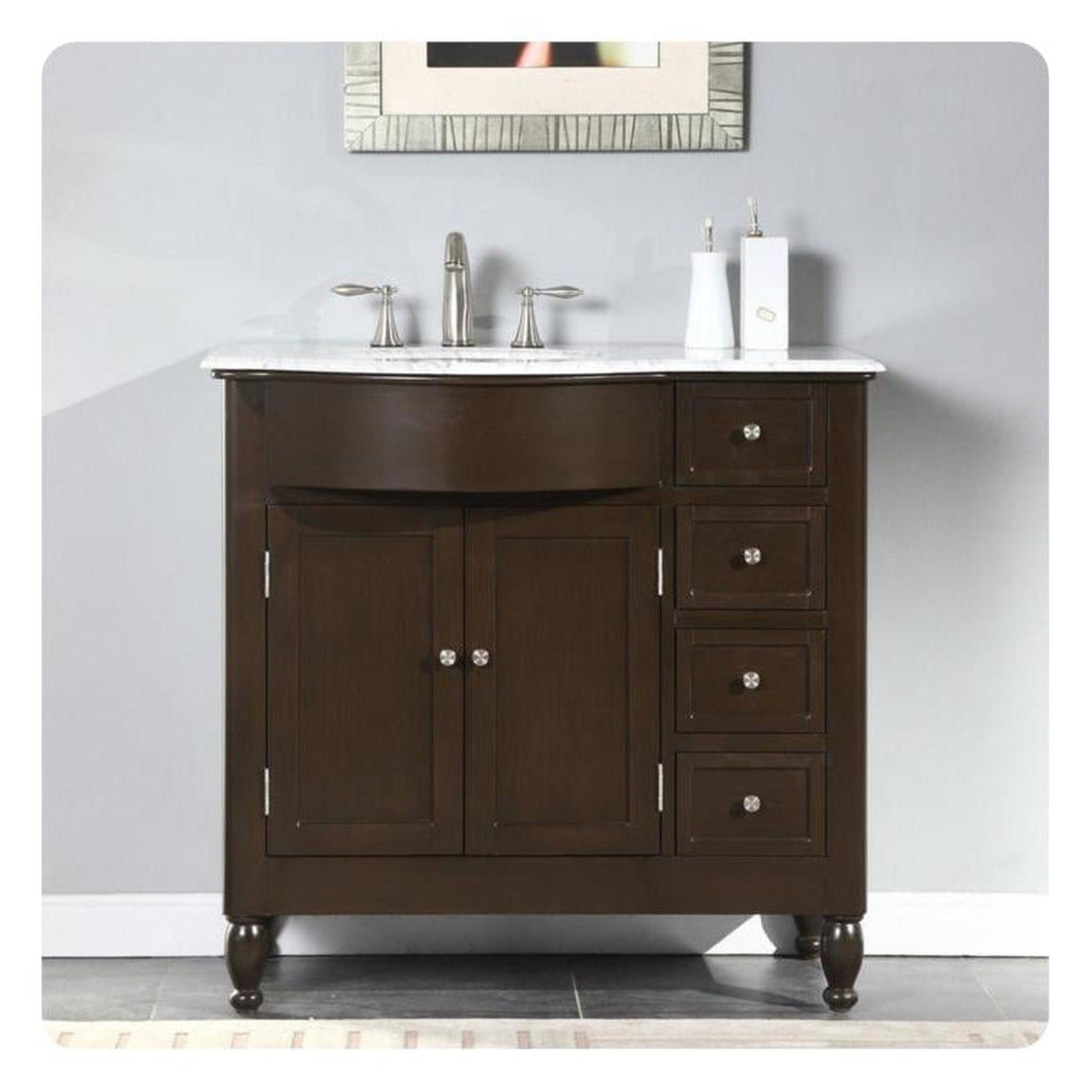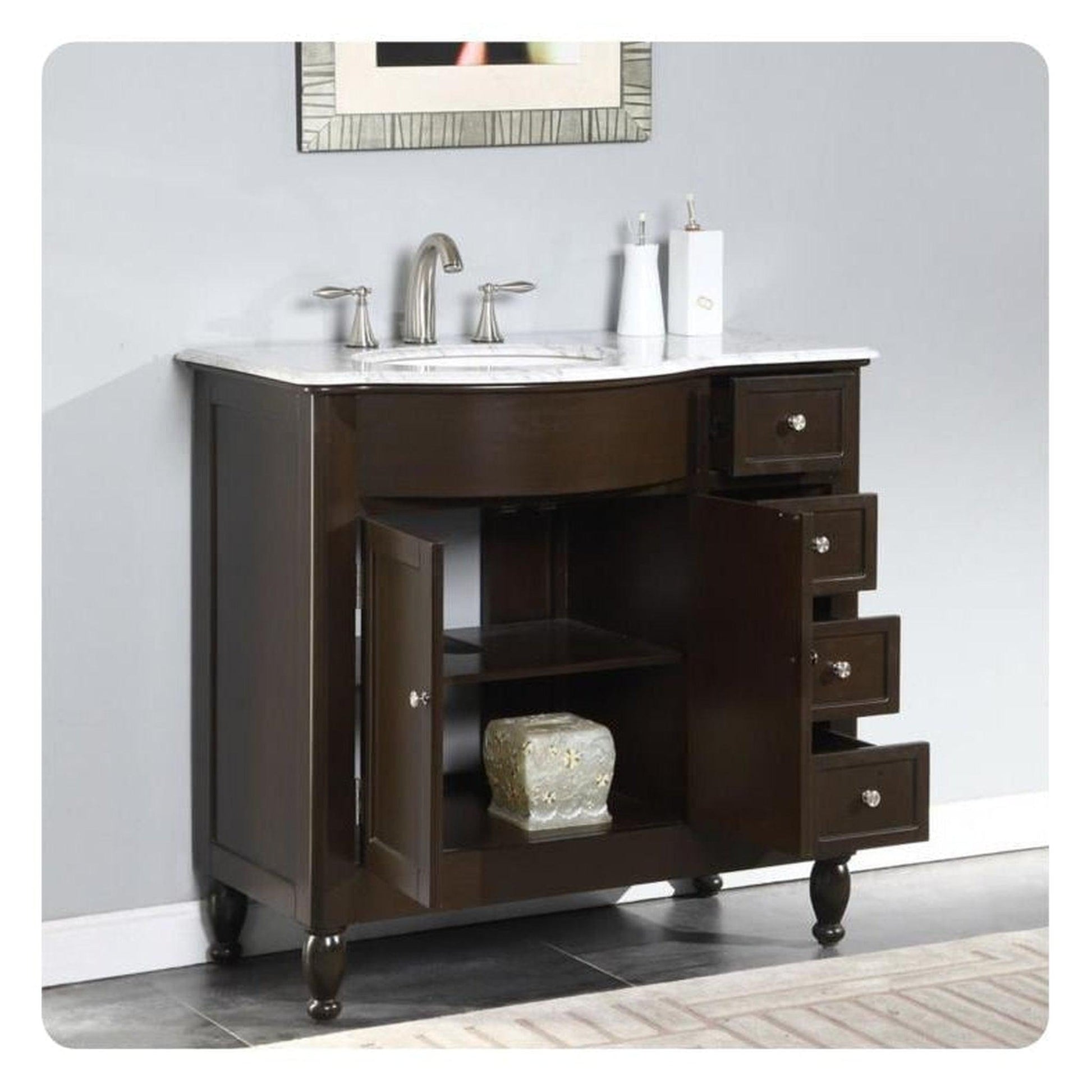 The Silkroad Exclusive 38" Single Left Sink Dark Walnut Bathroom Vanity offers classic elegance and practical design, perfect for smaller to mid-sized bathrooms.