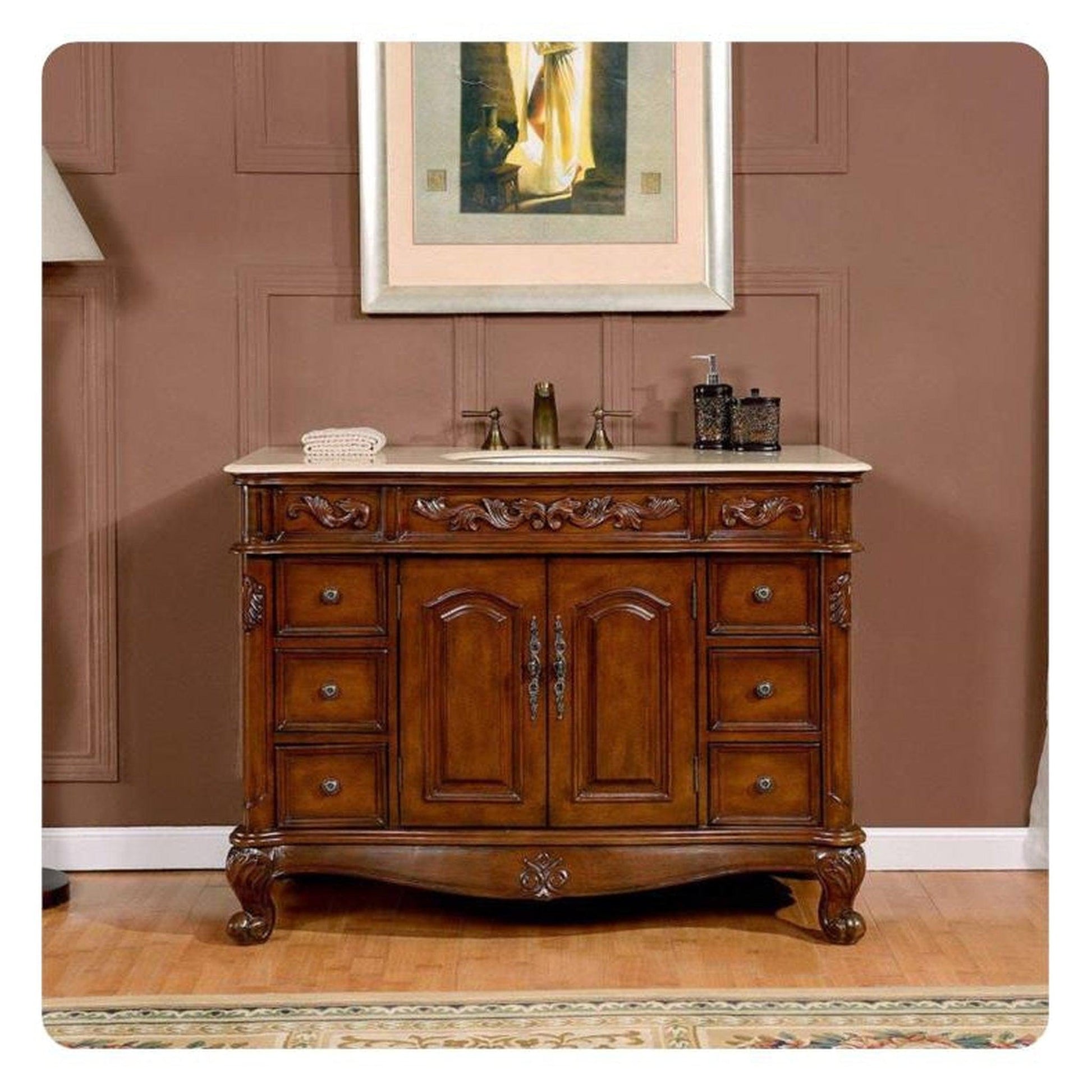 This vanity is perfect for any bathroom, featuring plenty of space for you to organize all of your bathroom necessities and accessories, rich English Chestnut wood finish, complementary antique brass handles and natural cream marfil marble stone counter top. Give your washroom the attention it deserves with this high quality elegant transitional bath cabinet.