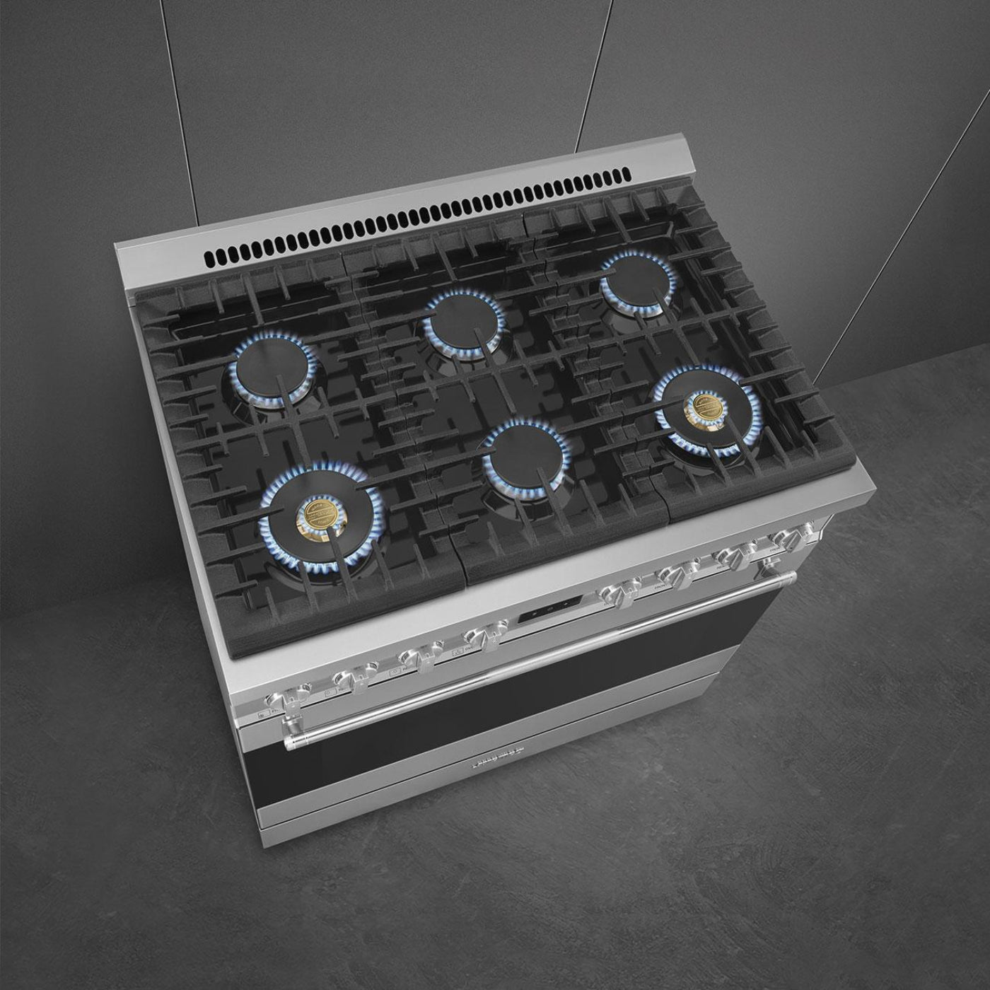 Compact- design cooker with gas oven and gas hob: efficient and responsive, the visible heat source allows total control and choice of the right intensity.