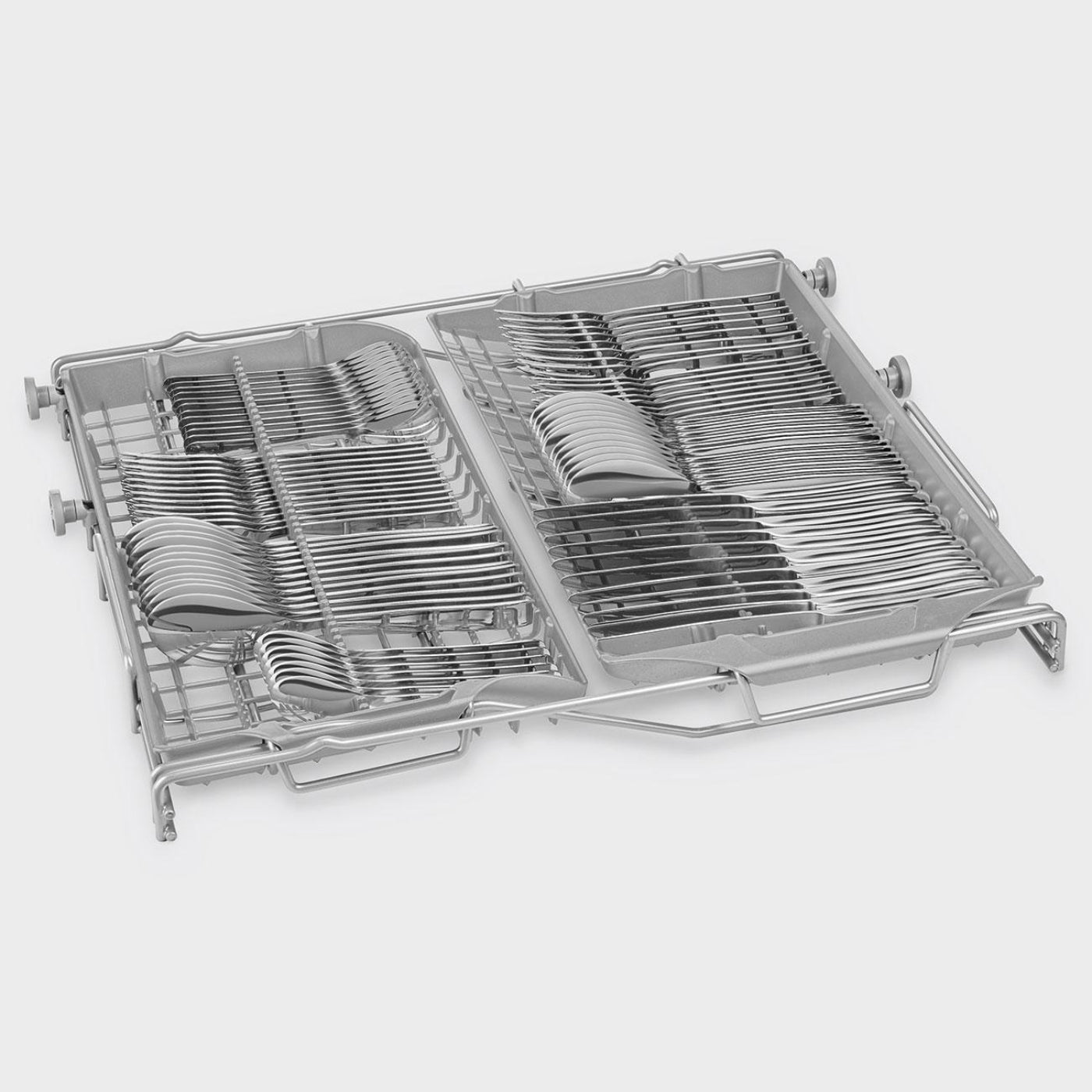A: Multiple cycles including eco, intensive, quick wash, and half load, with adjustable racks for versatile loading.